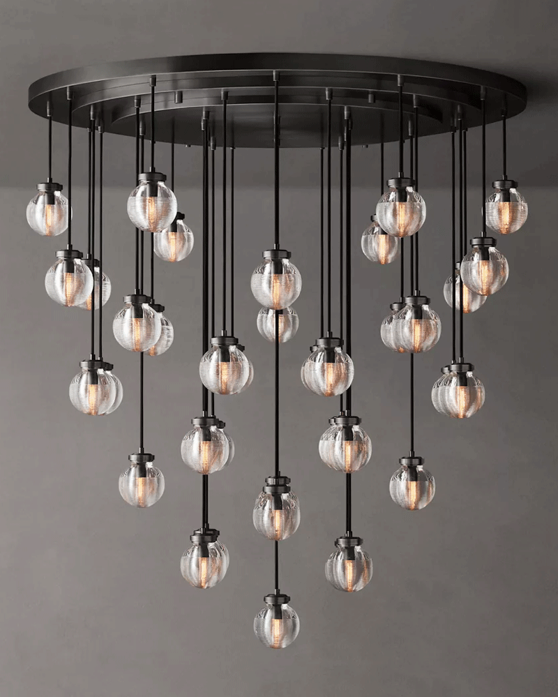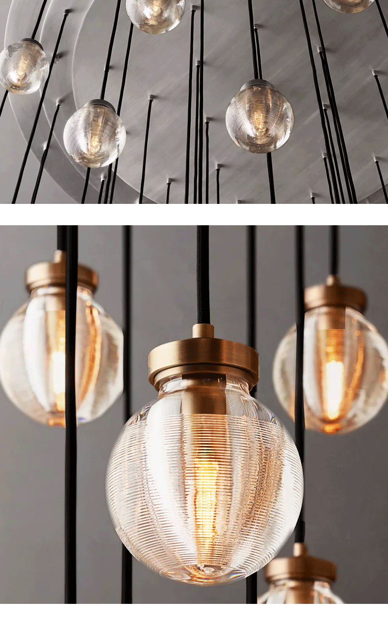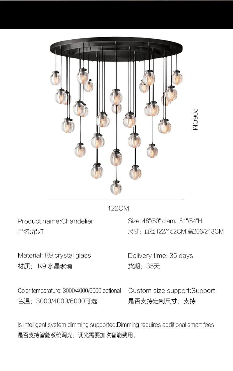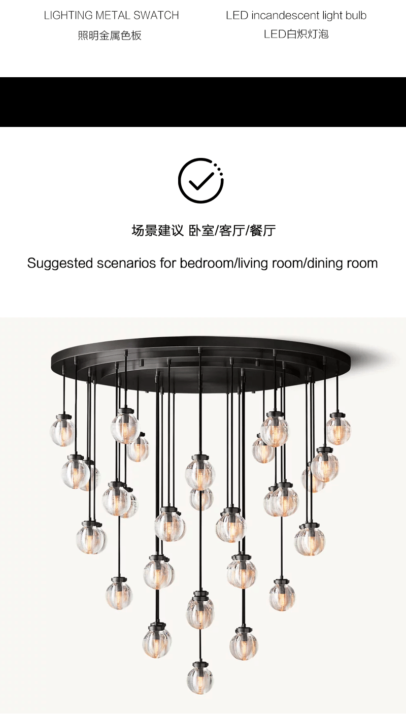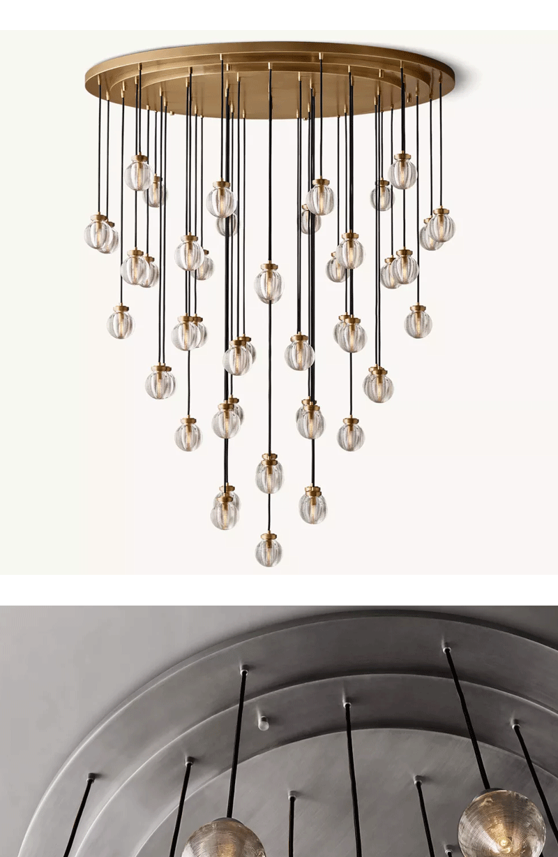 美式轻奢客厅餐厅珍珠圆形枝形玻璃吊灯