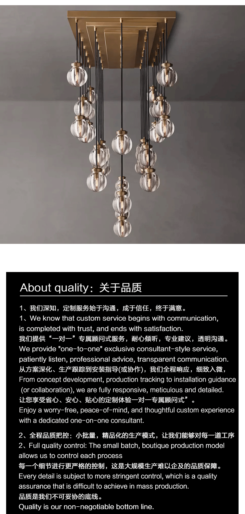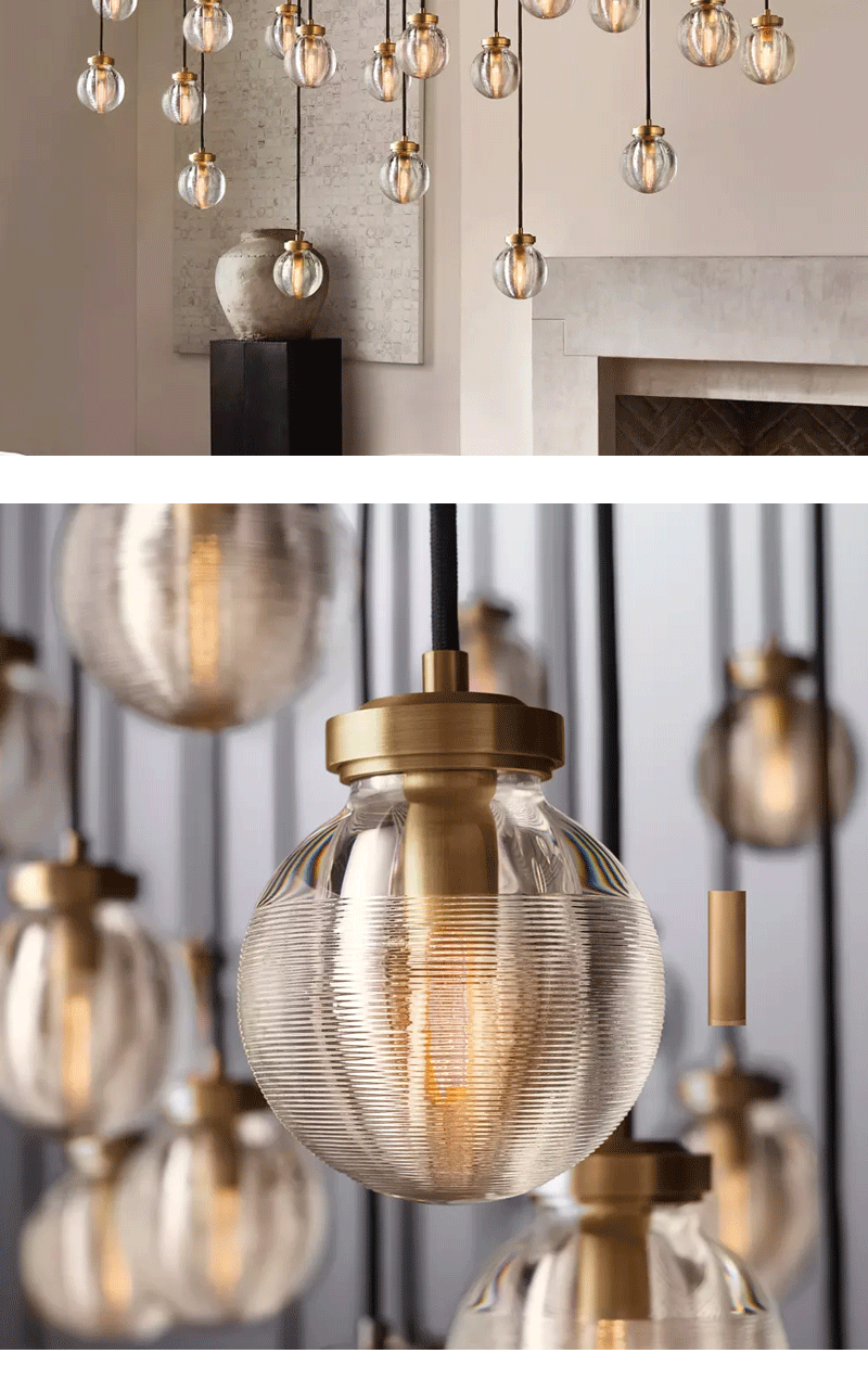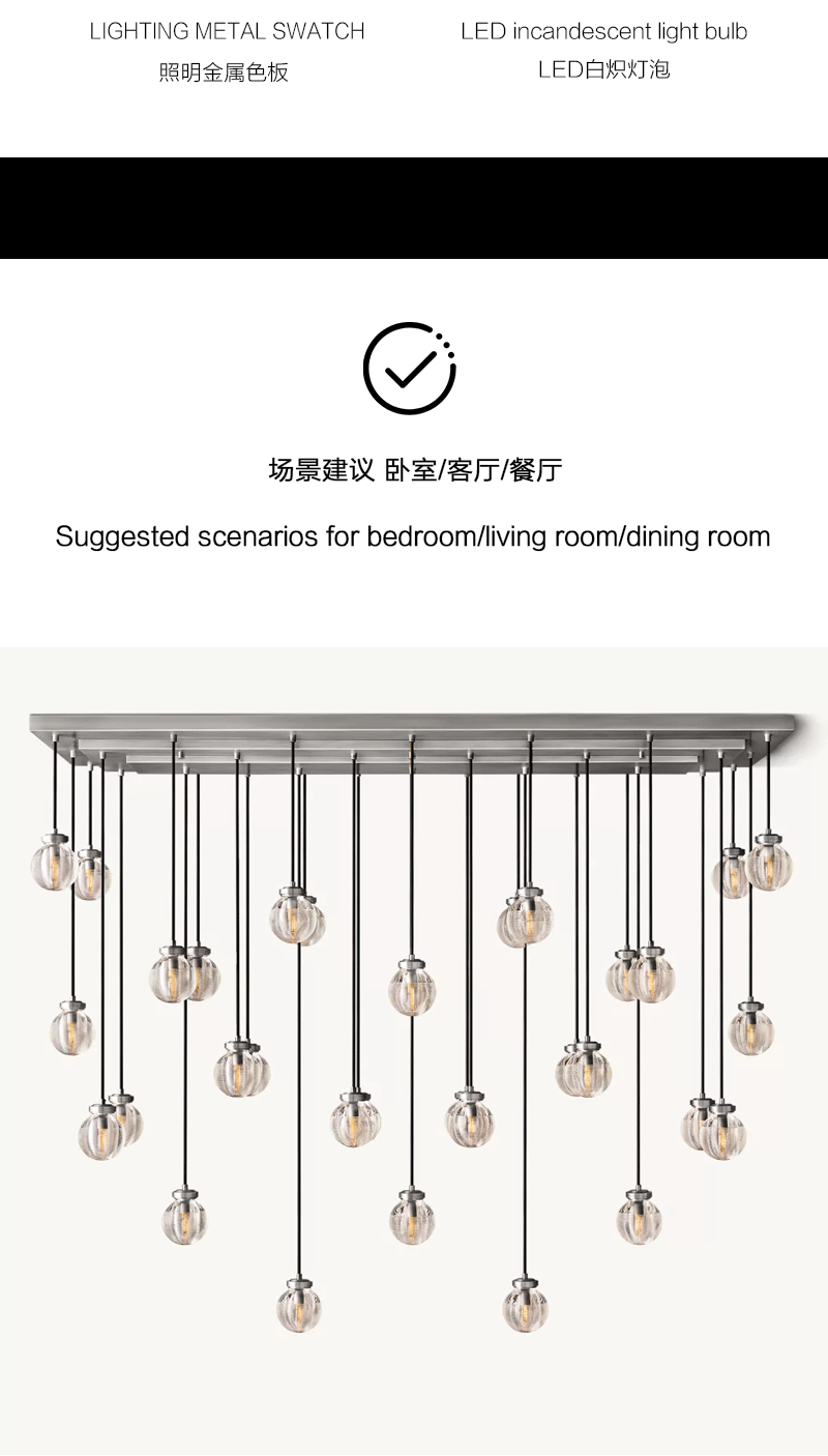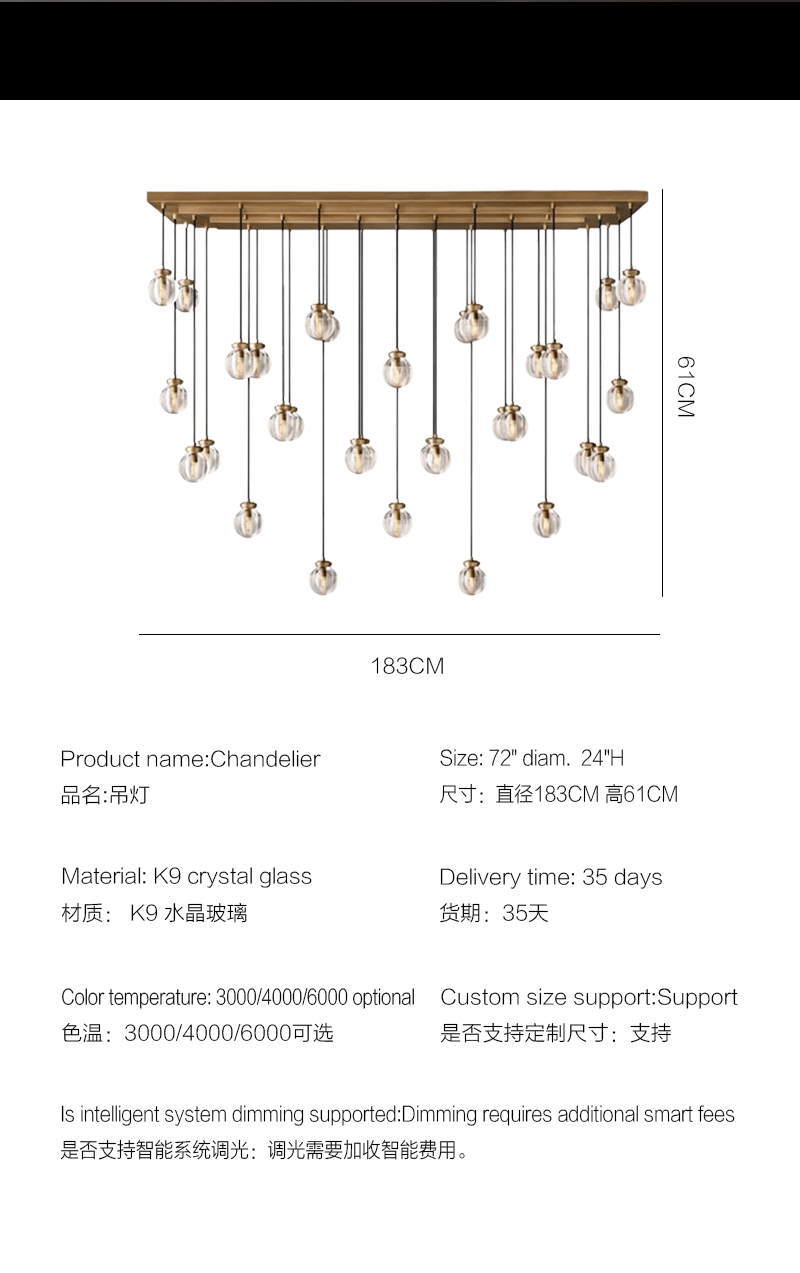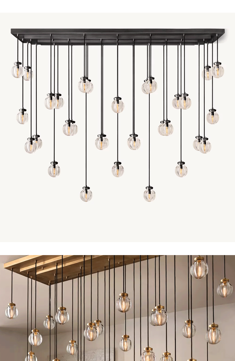 美式轻奢客厅餐厅珍珠矩形枝形玻璃吊灯