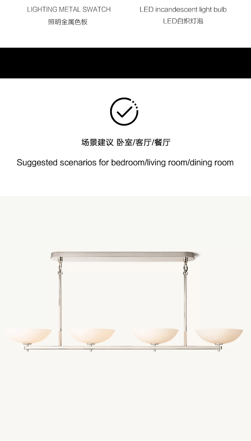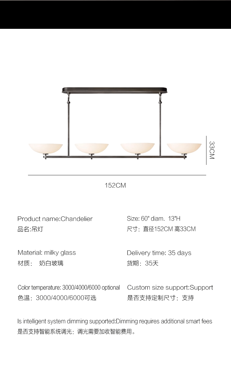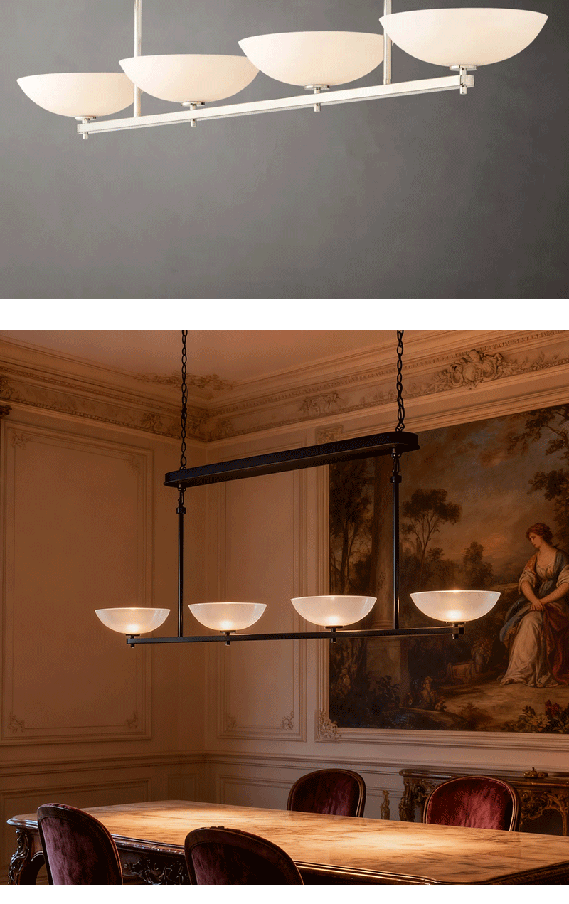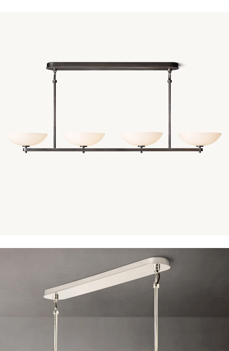 美式轻奢客厅餐厅线性直条奶白玻璃吊灯