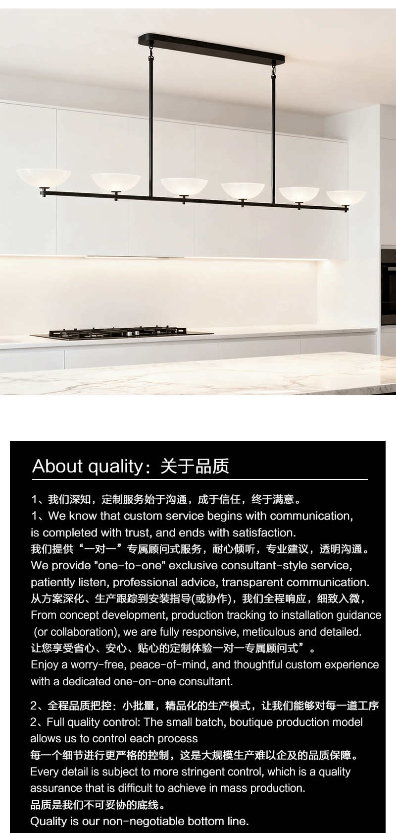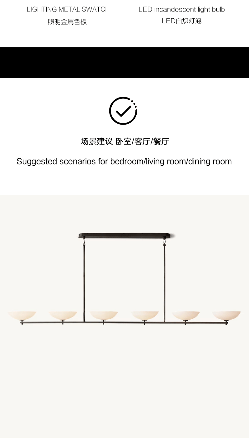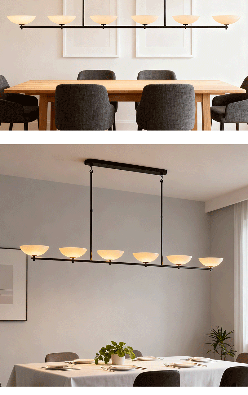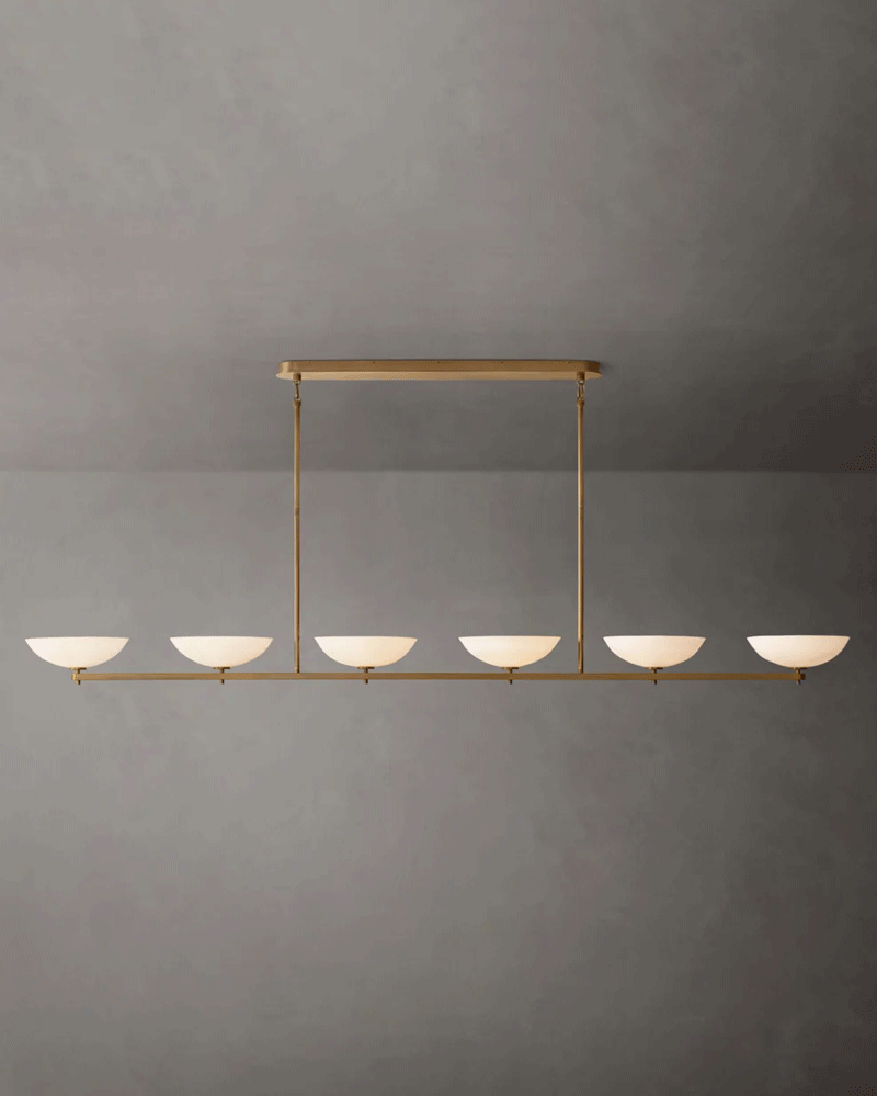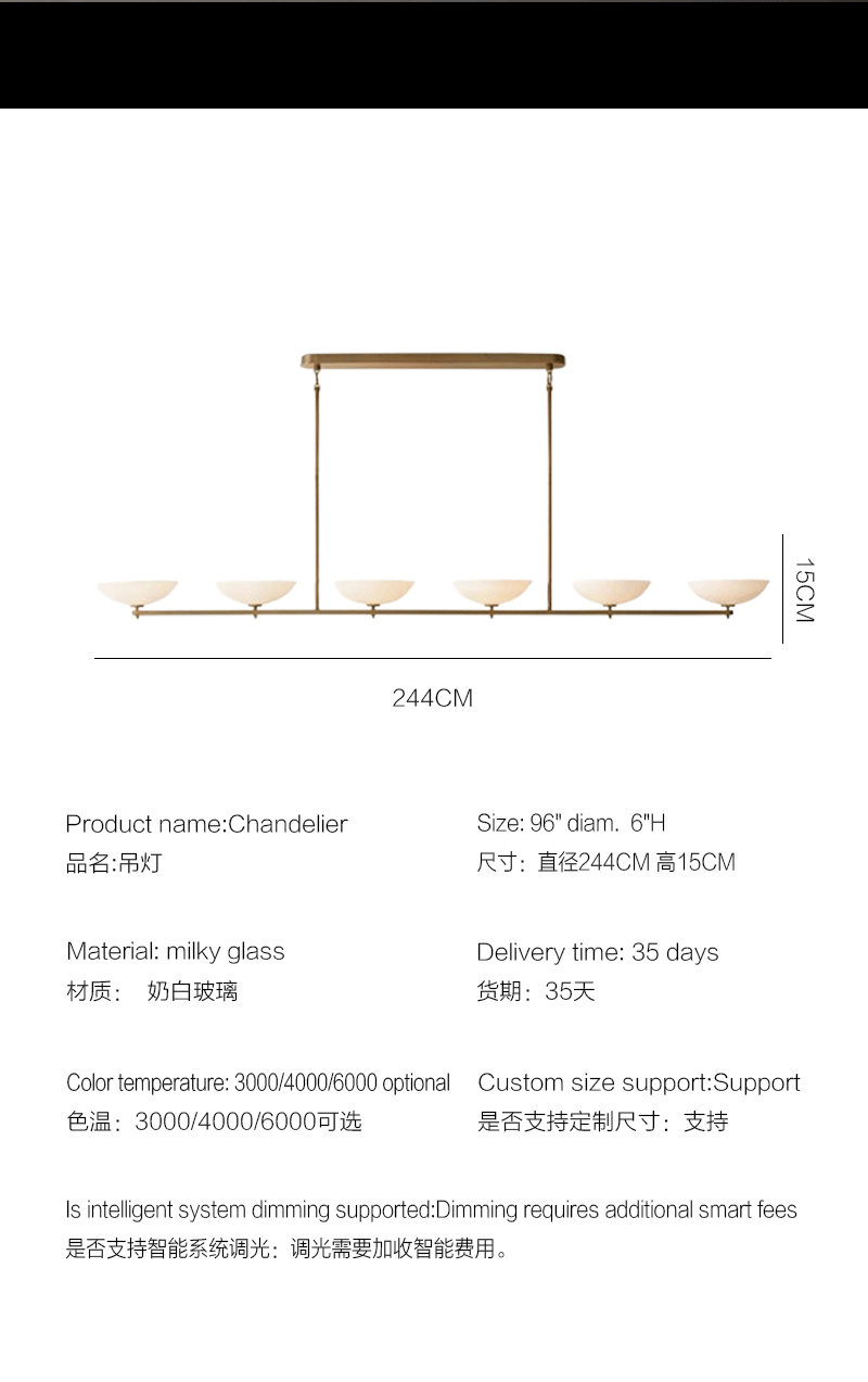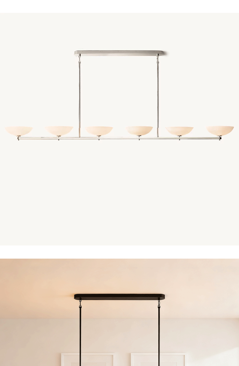 美式轻奢客厅餐厅线性枝形奶白玻璃吊灯