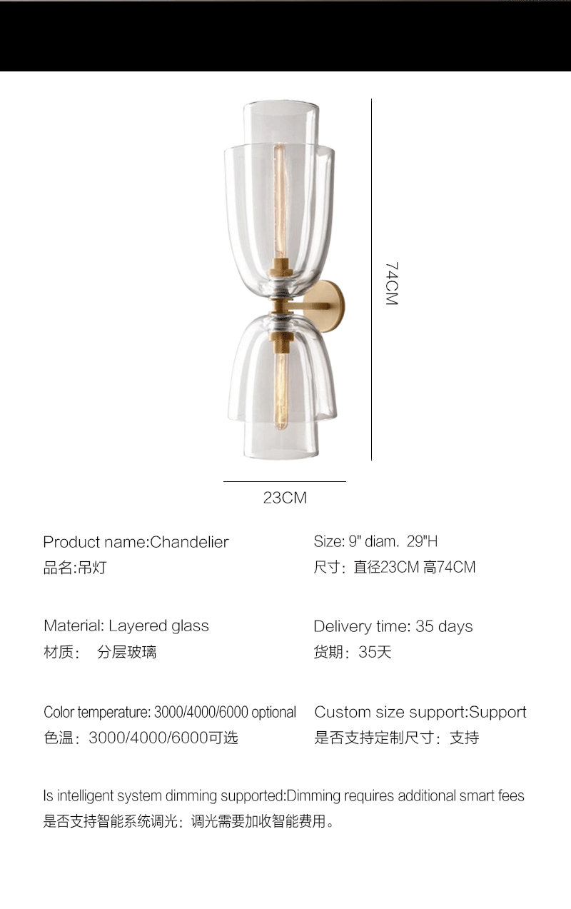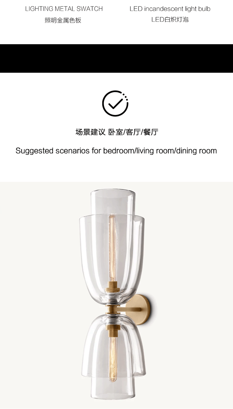 美式轻奢卧室书房透明玻璃钟形大壁灯