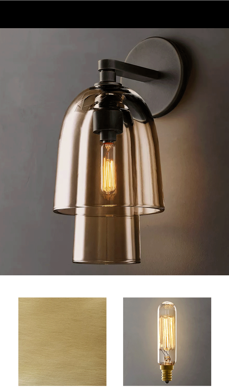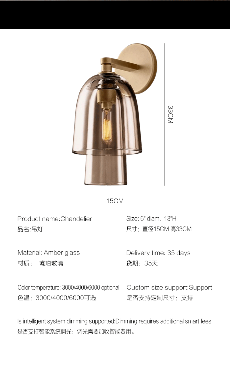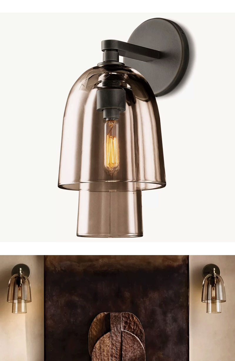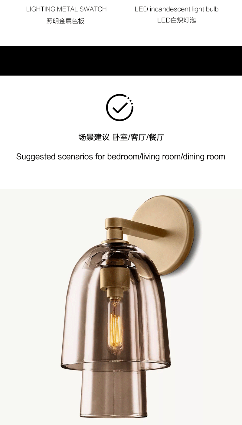 美式轻奢卧室书房分层琥珀玻璃壁灯