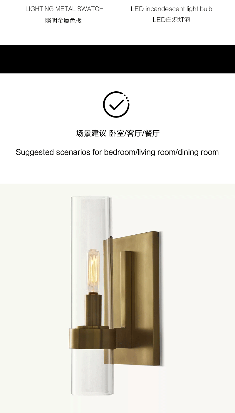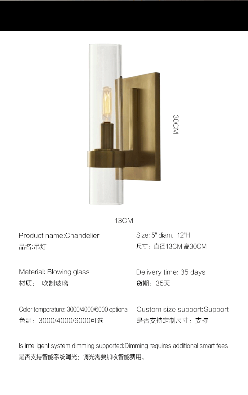 美式轻奢卧室书房吹制透明玻璃壁灯