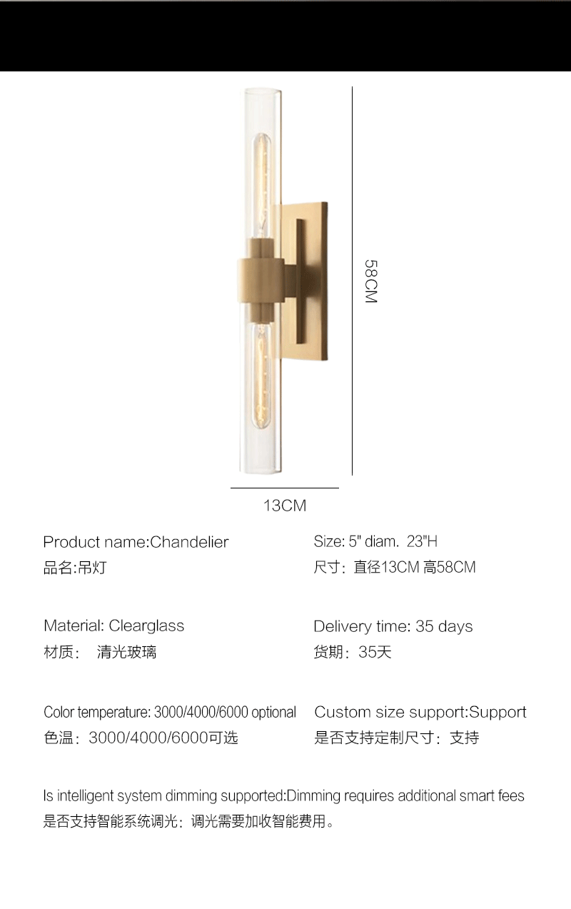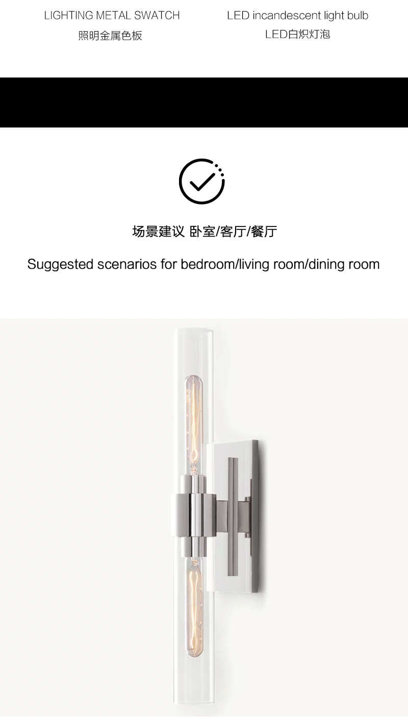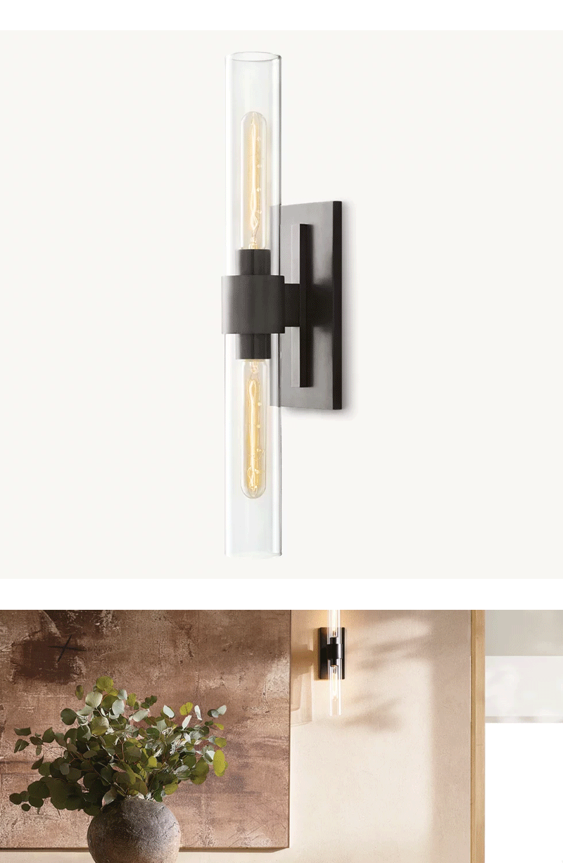 美式轻奢卧室书房透明清光玻璃线性壁灯