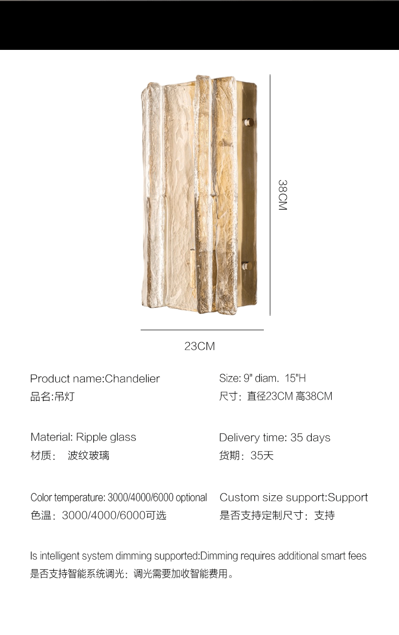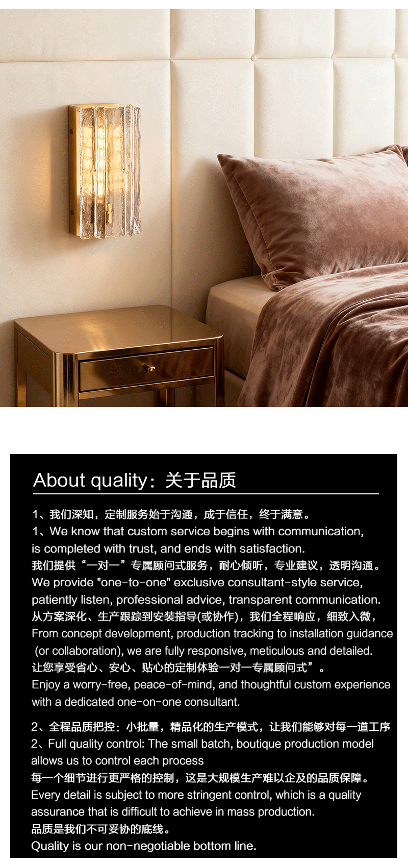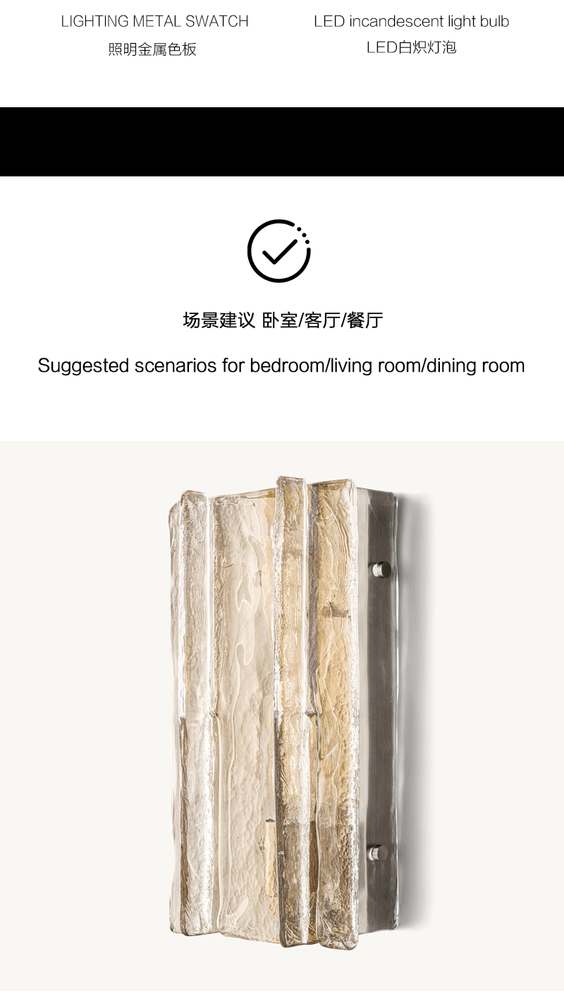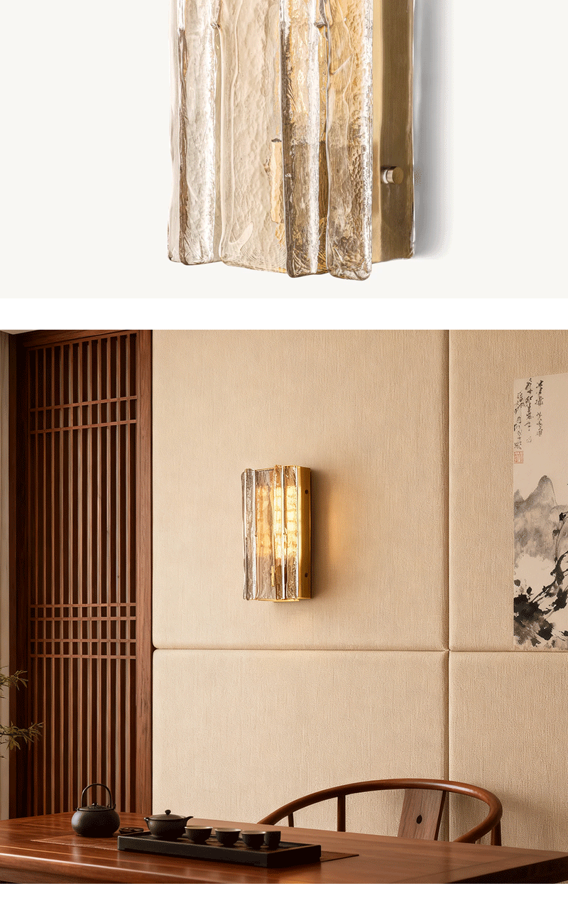 美式轻奢卧室书房格子波纹玻璃壁灯
