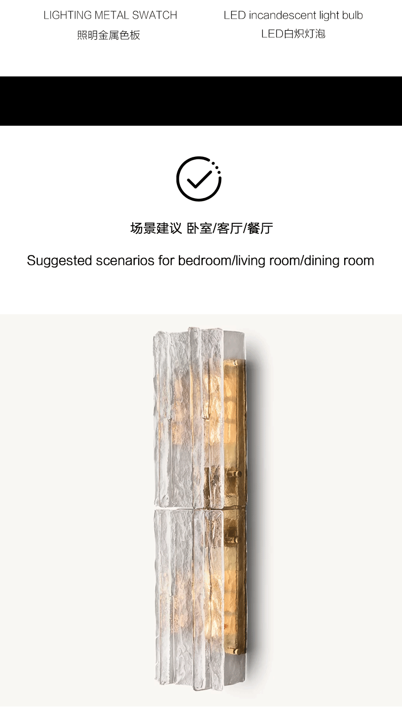 美式轻奢卧室书房波纹玻璃大壁灯