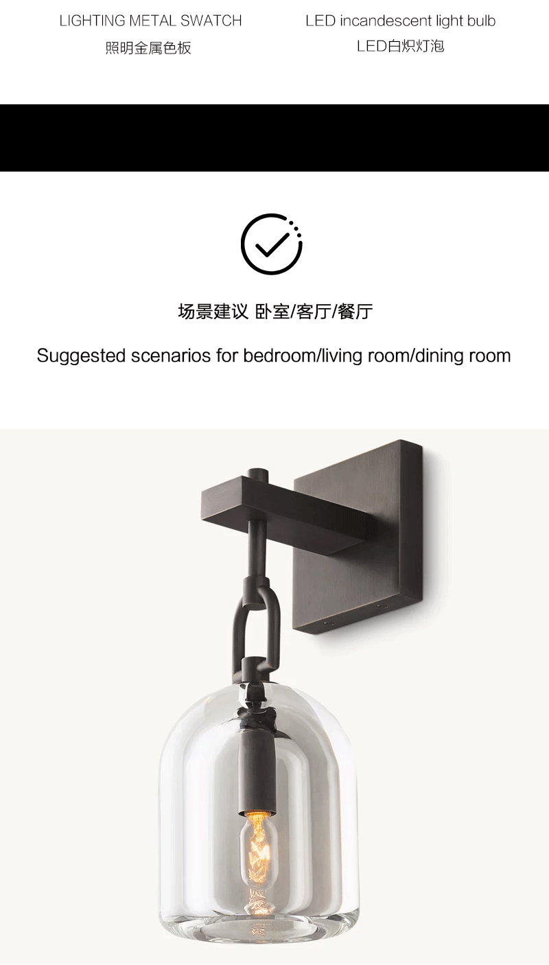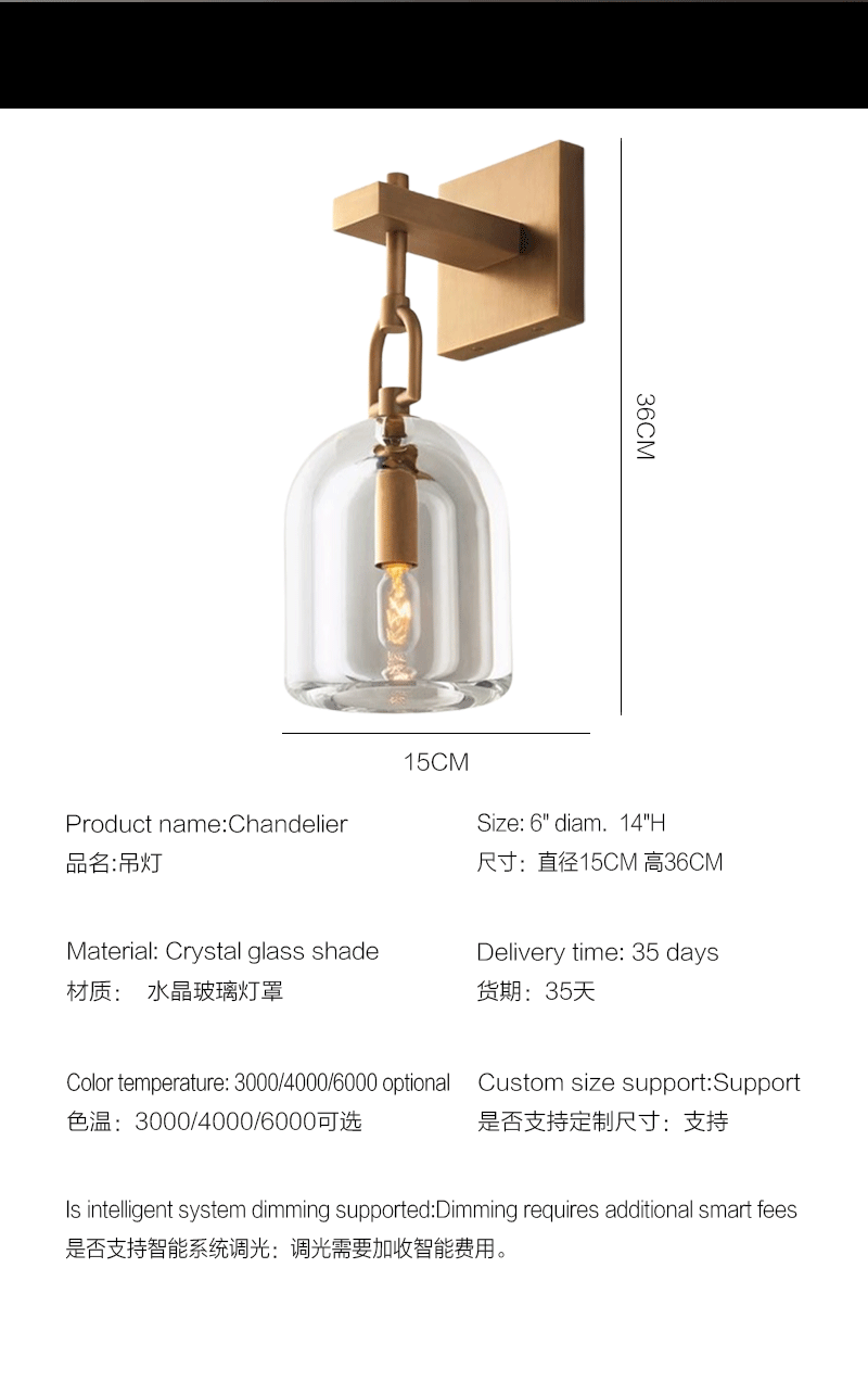 美式轻奢卧室书房水晶玻璃灯罩壁灯