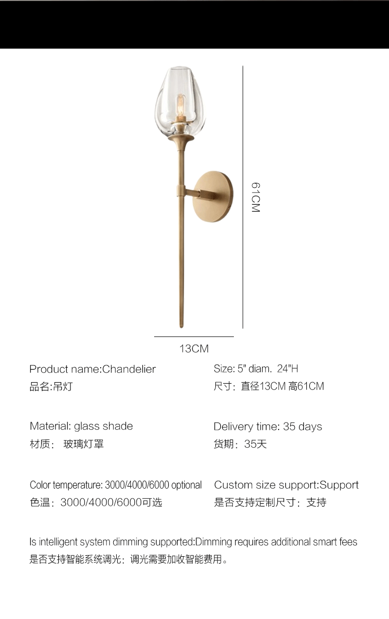 美式轻奢客厅餐厅郁金香玻璃灯罩壁灯