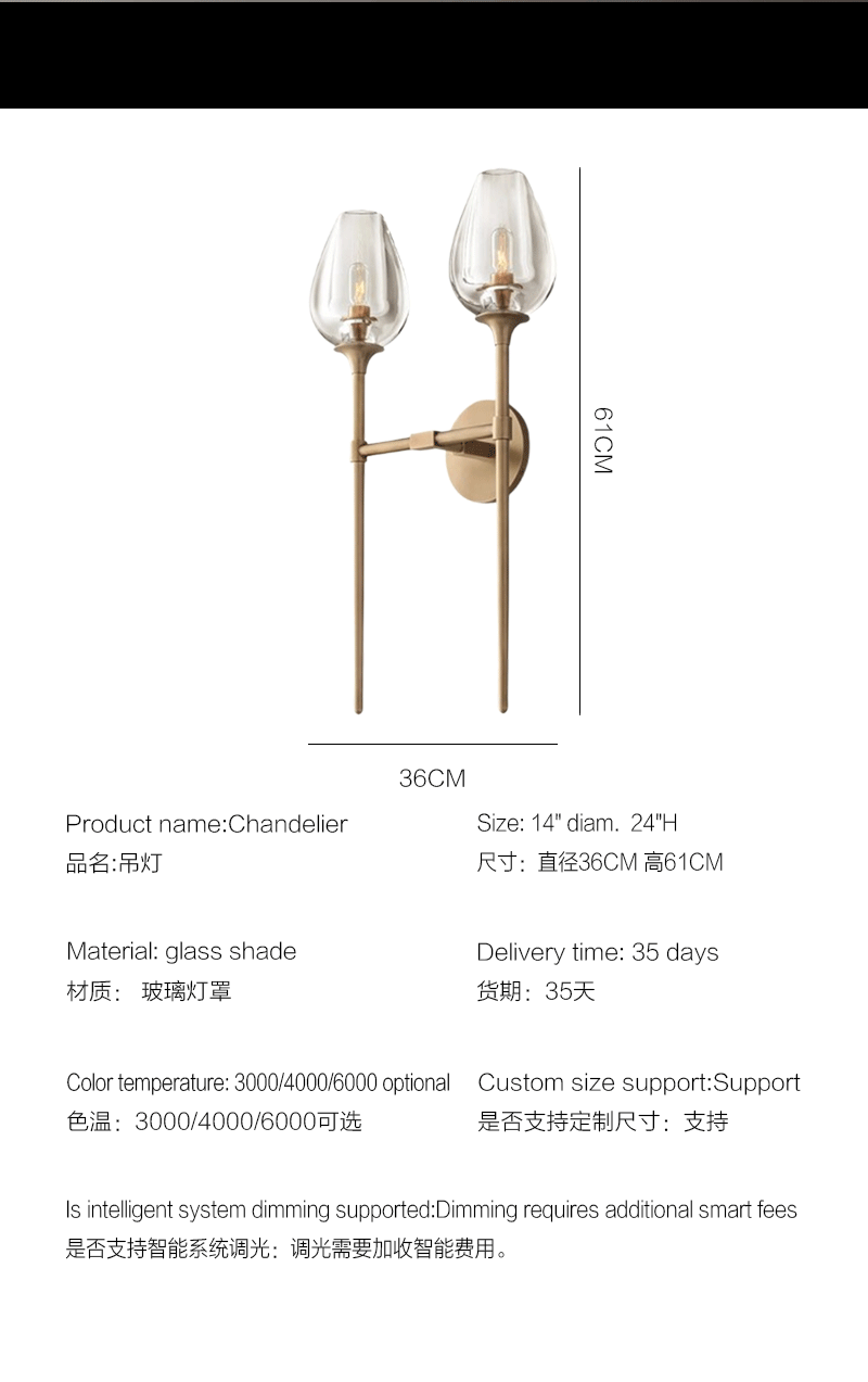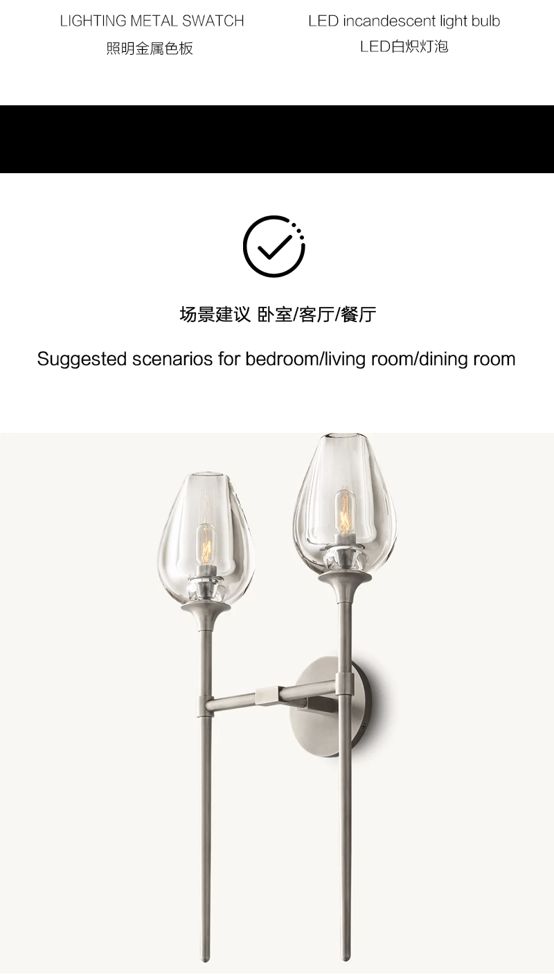美式轻奢客厅餐厅郁金香双壁玻璃壁灯