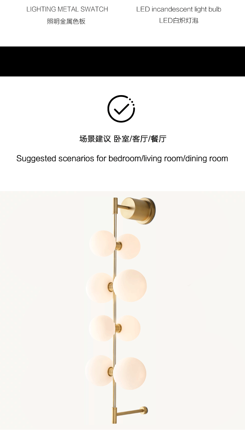 美式轻奢客厅餐厅轨道玻璃球体壁灯
