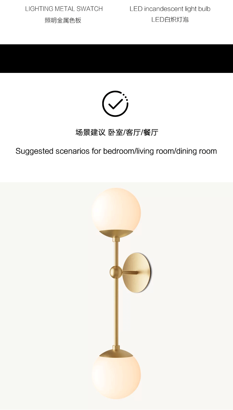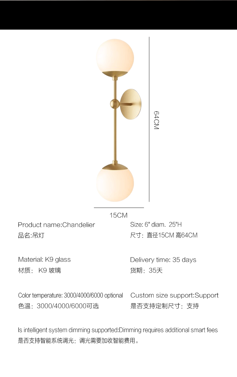 美式轻奢客厅餐厅双壁玻璃球壁灯