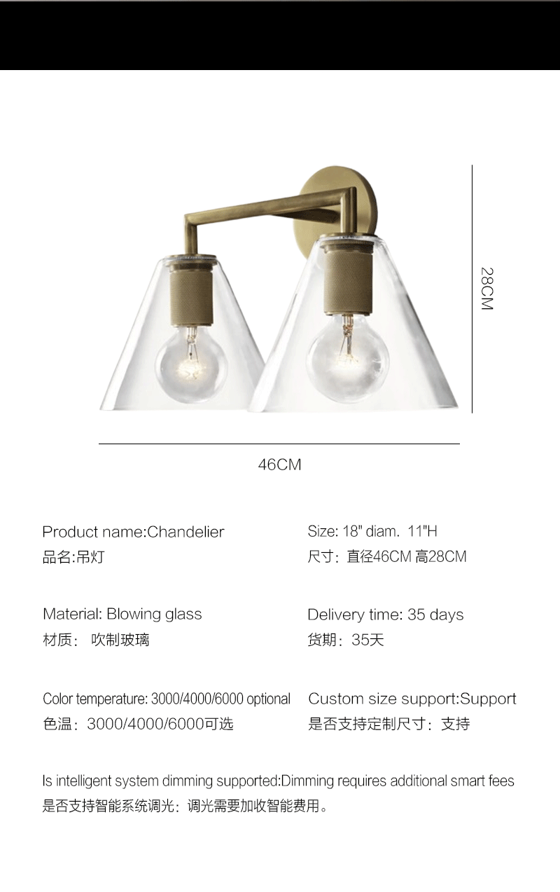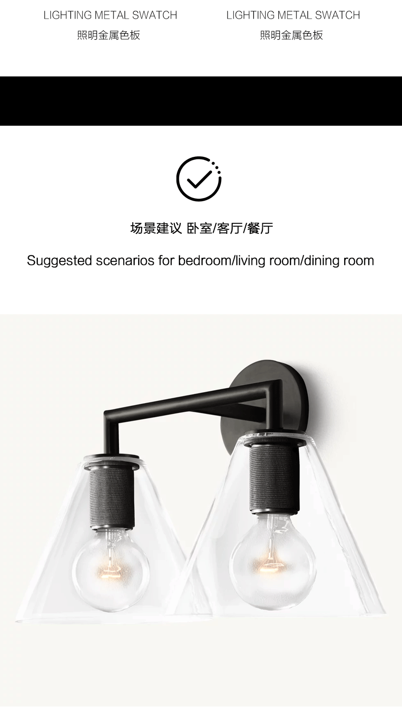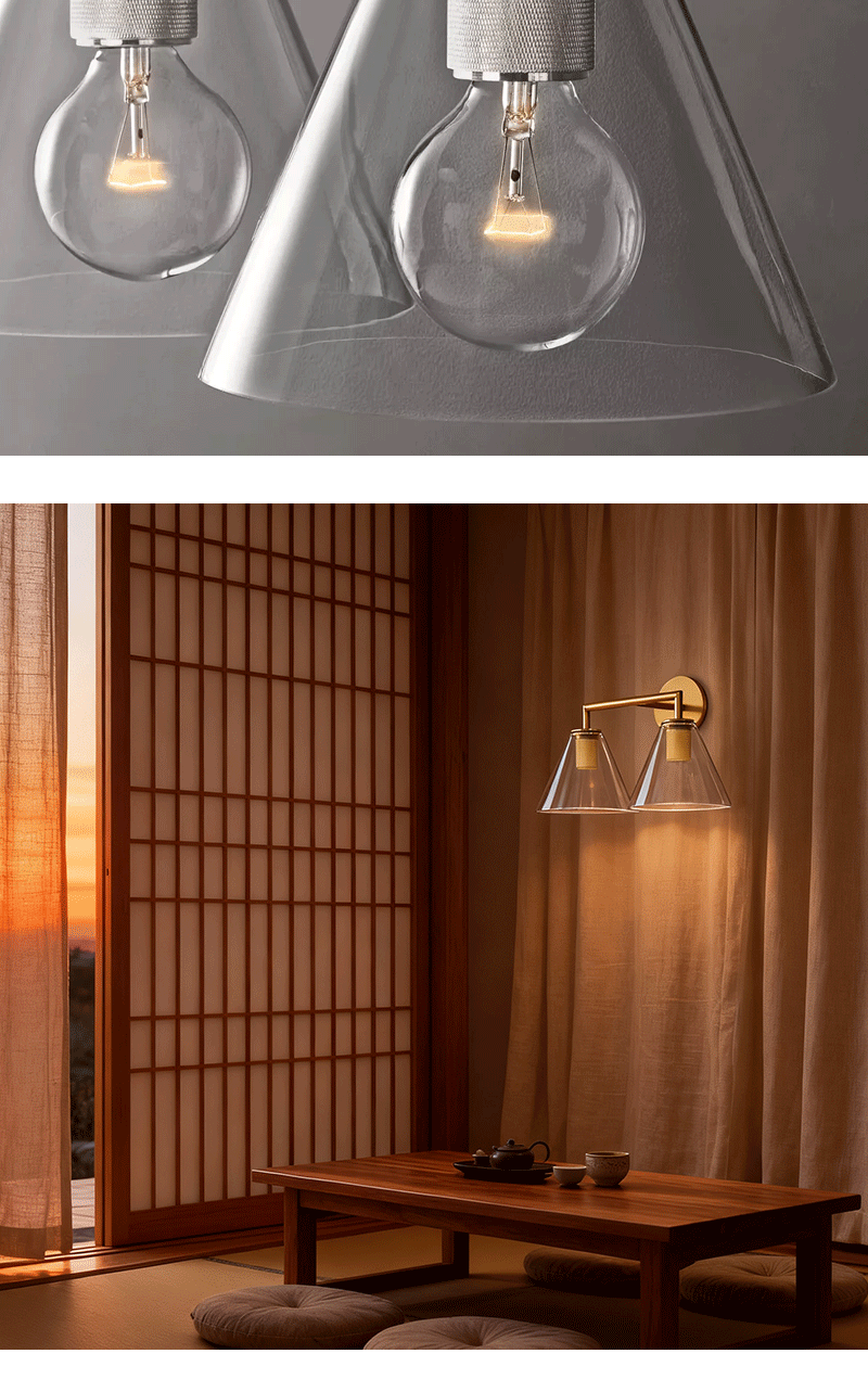 美式轻奢客厅餐厅双壁玻璃漏斗壁灯