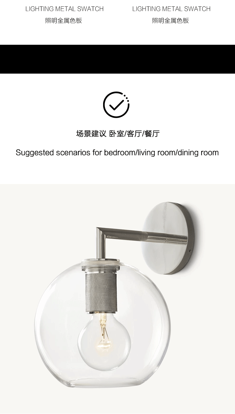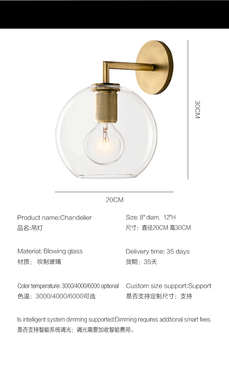 美式轻奢客厅餐厅透明球形灯罩壁灯