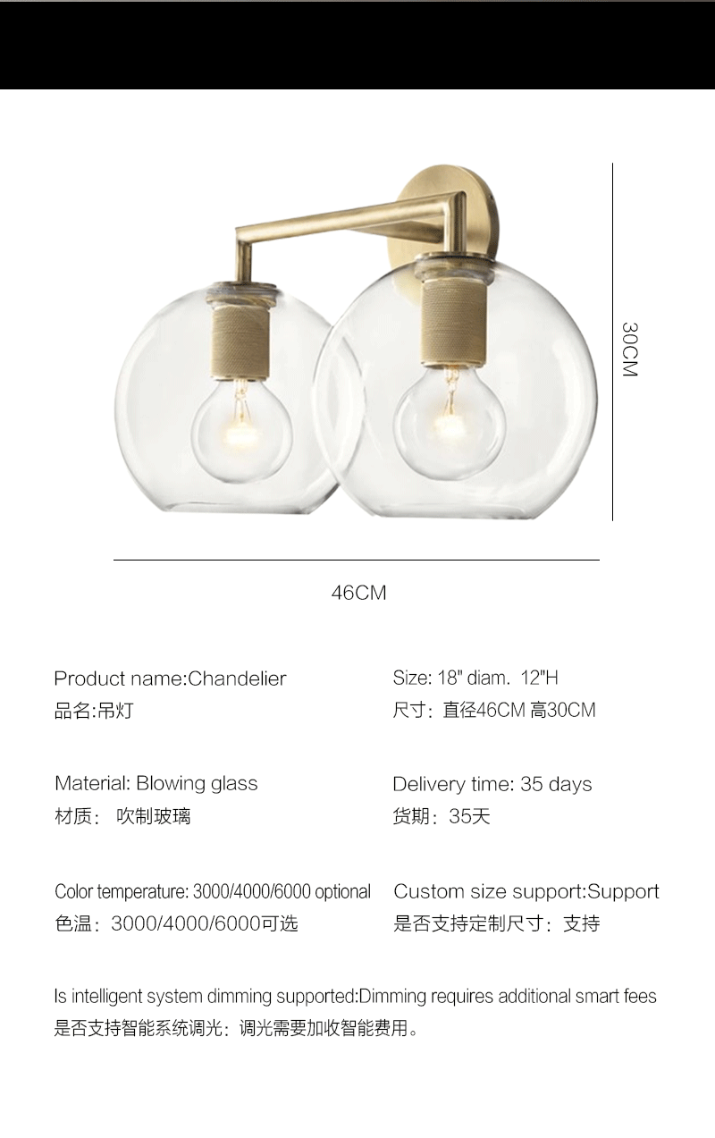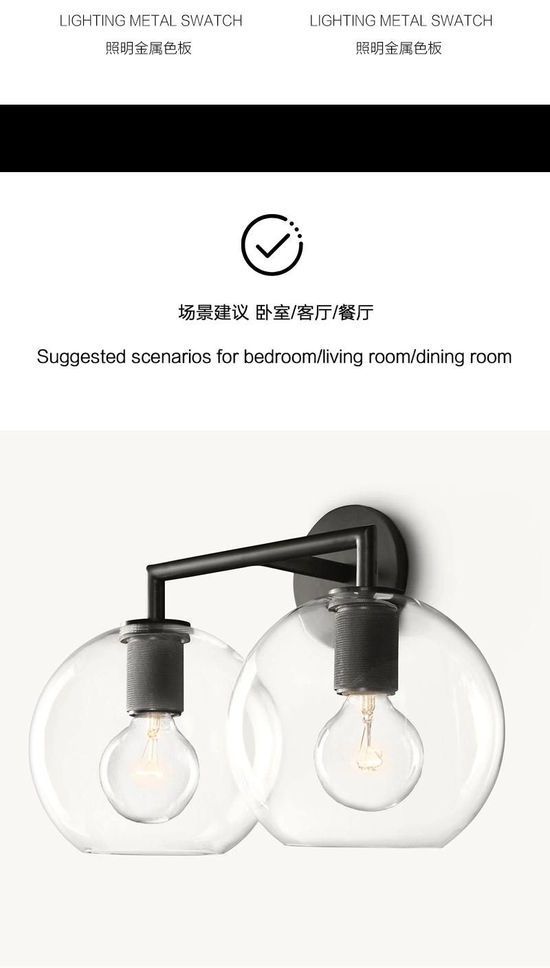 美式轻奢客厅餐厅双壁透明玻璃壁灯