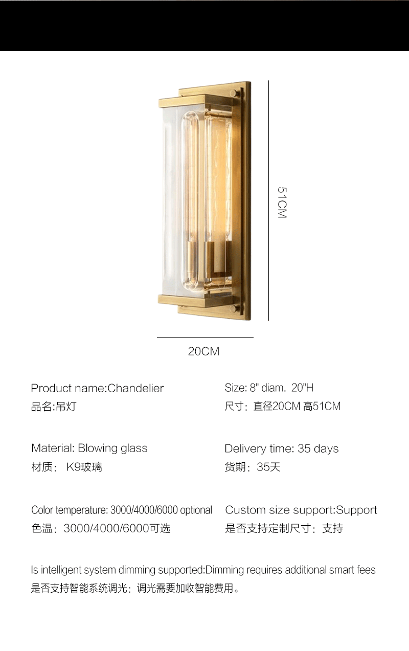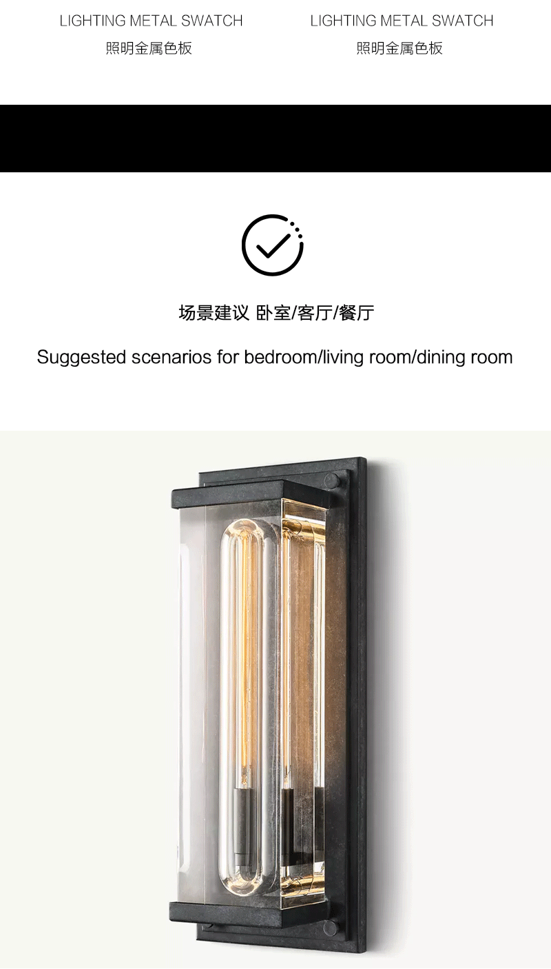 美式轻奢客厅餐厅大矩形玻璃壁灯