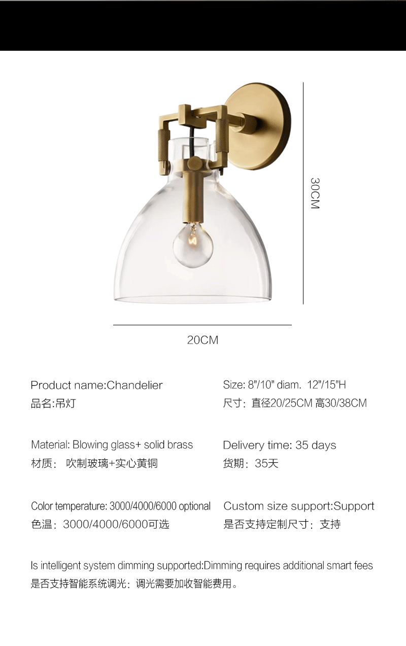 美式轻奢客厅餐厅吹制玻璃钟形壁灯