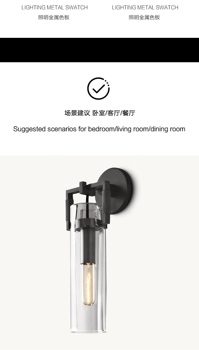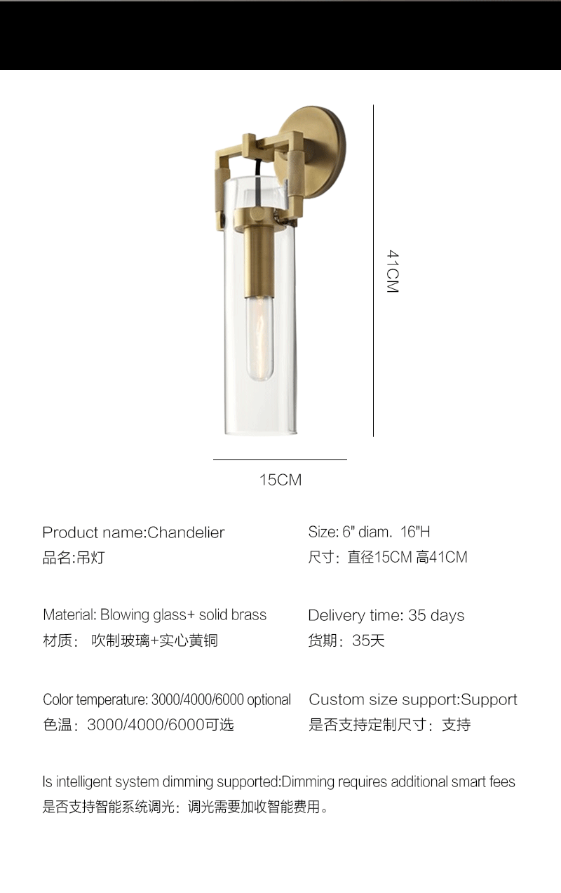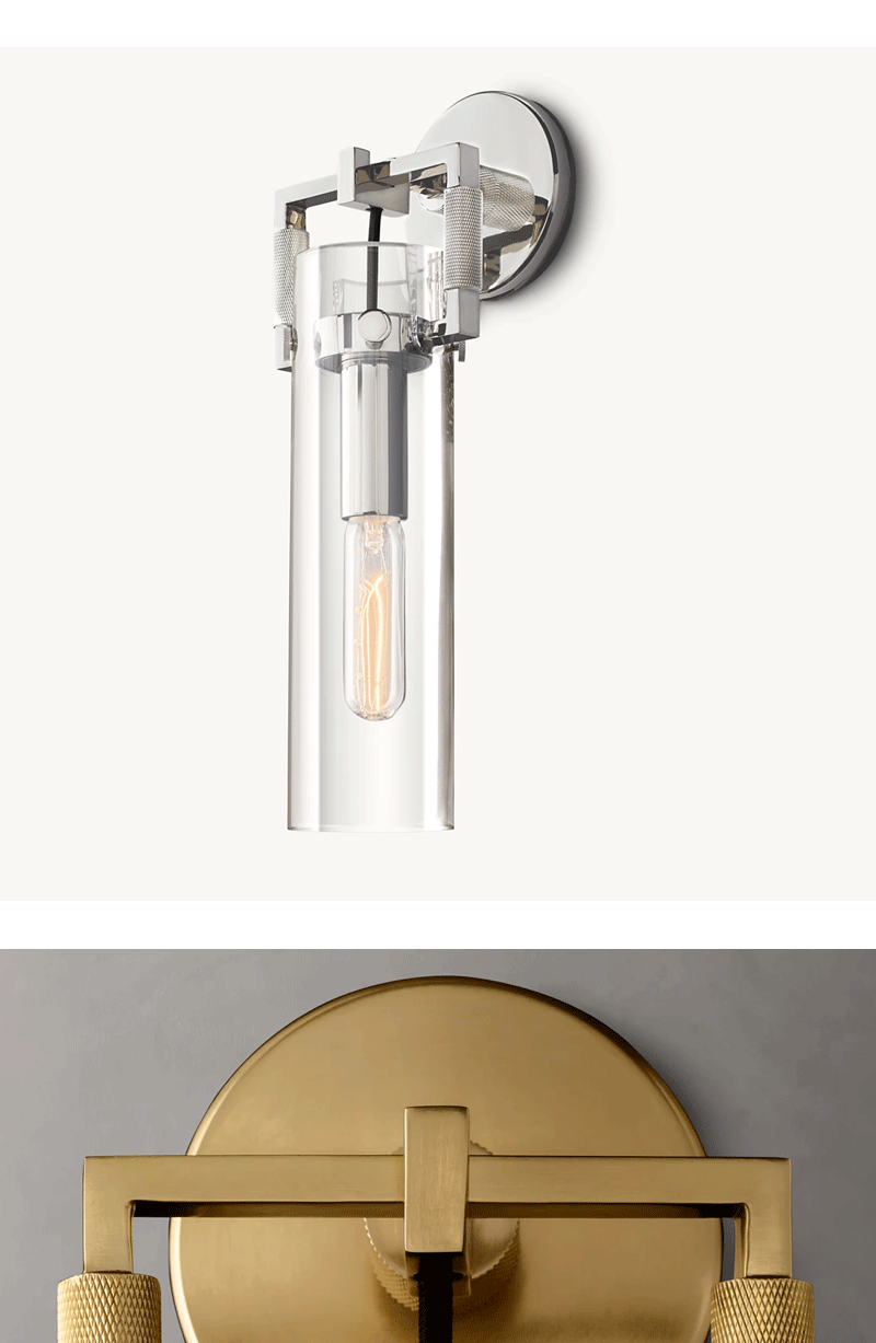 美式轻奢客厅餐厅玻璃大圆筒壁灯