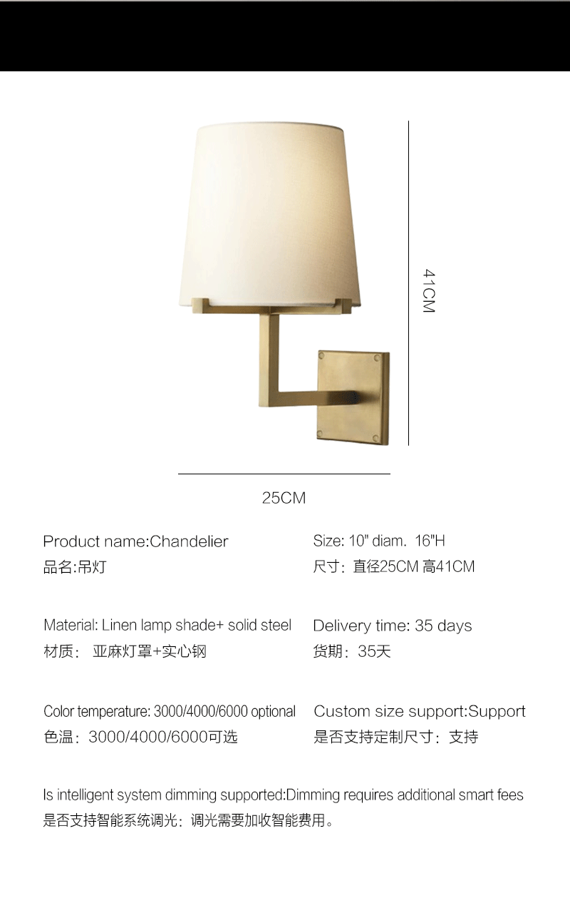 美式轻奢客厅餐厅织物灯罩大壁灯