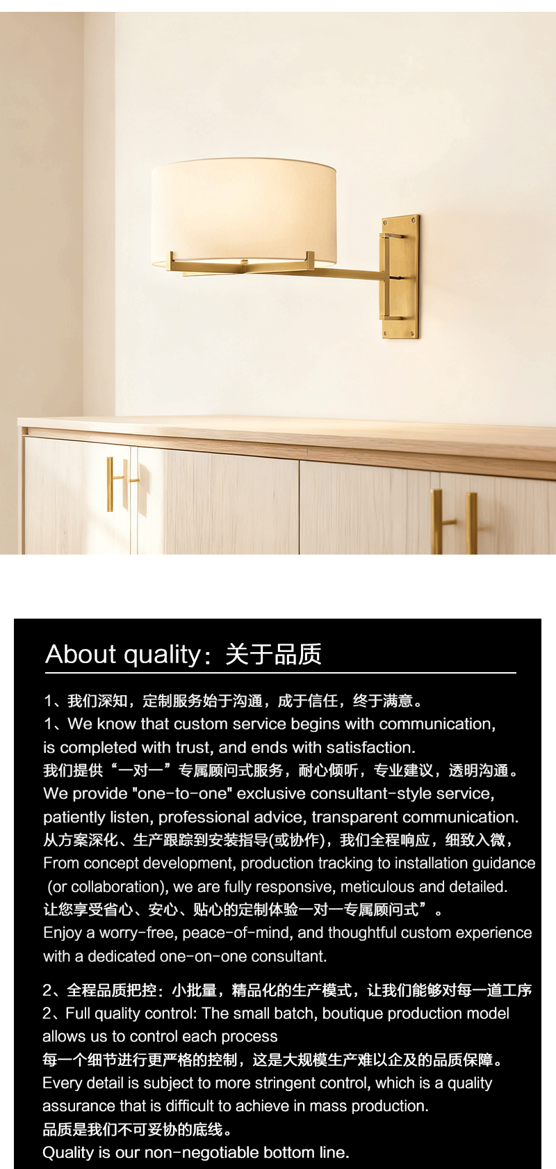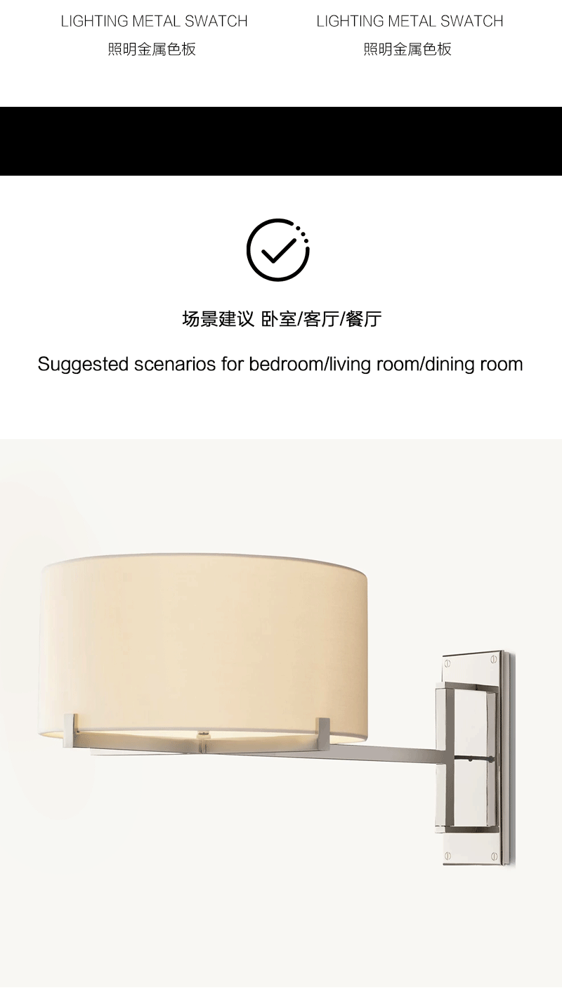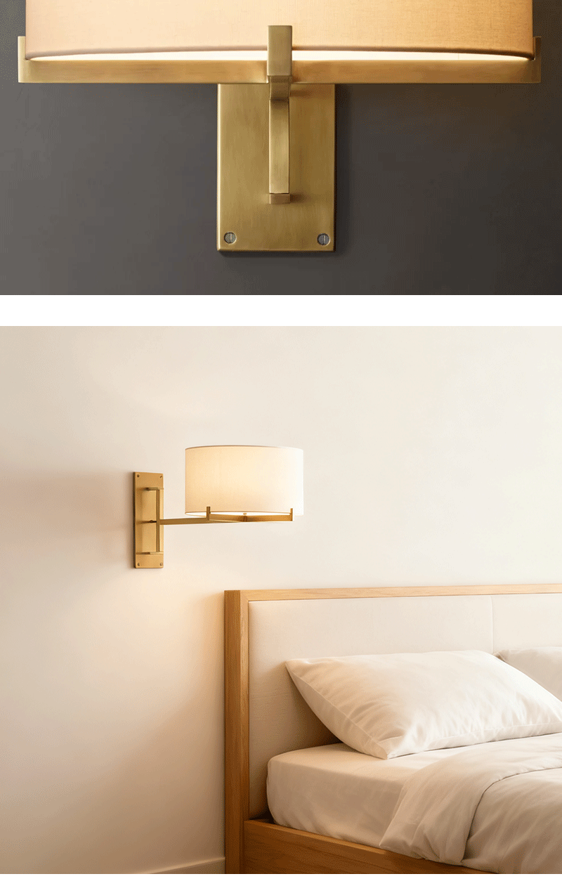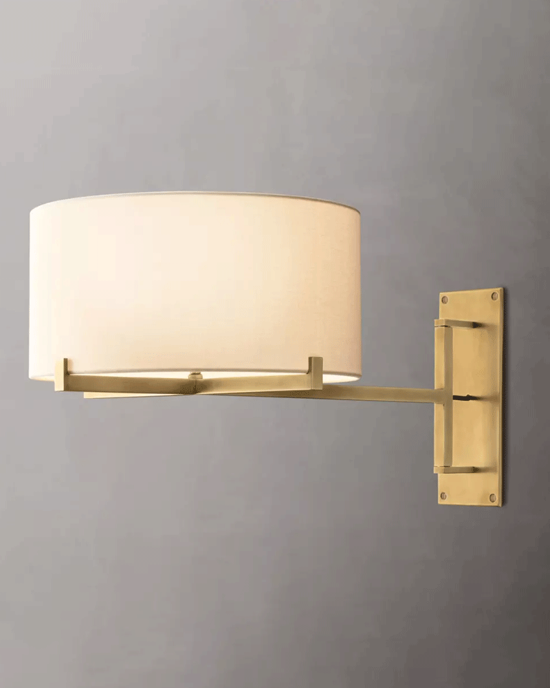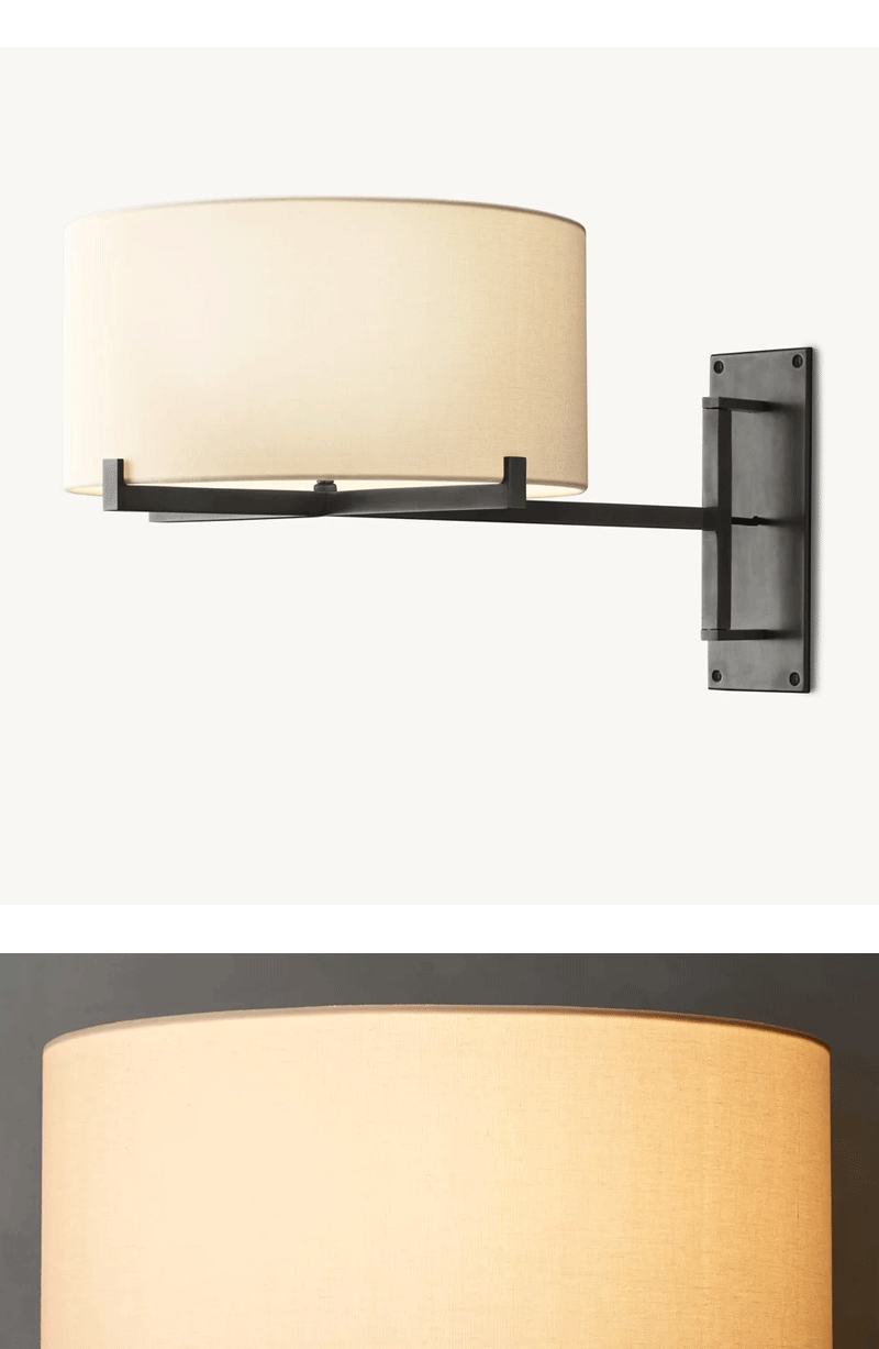 美式轻奢客厅餐厅亚麻鼓罩摇臂壁灯