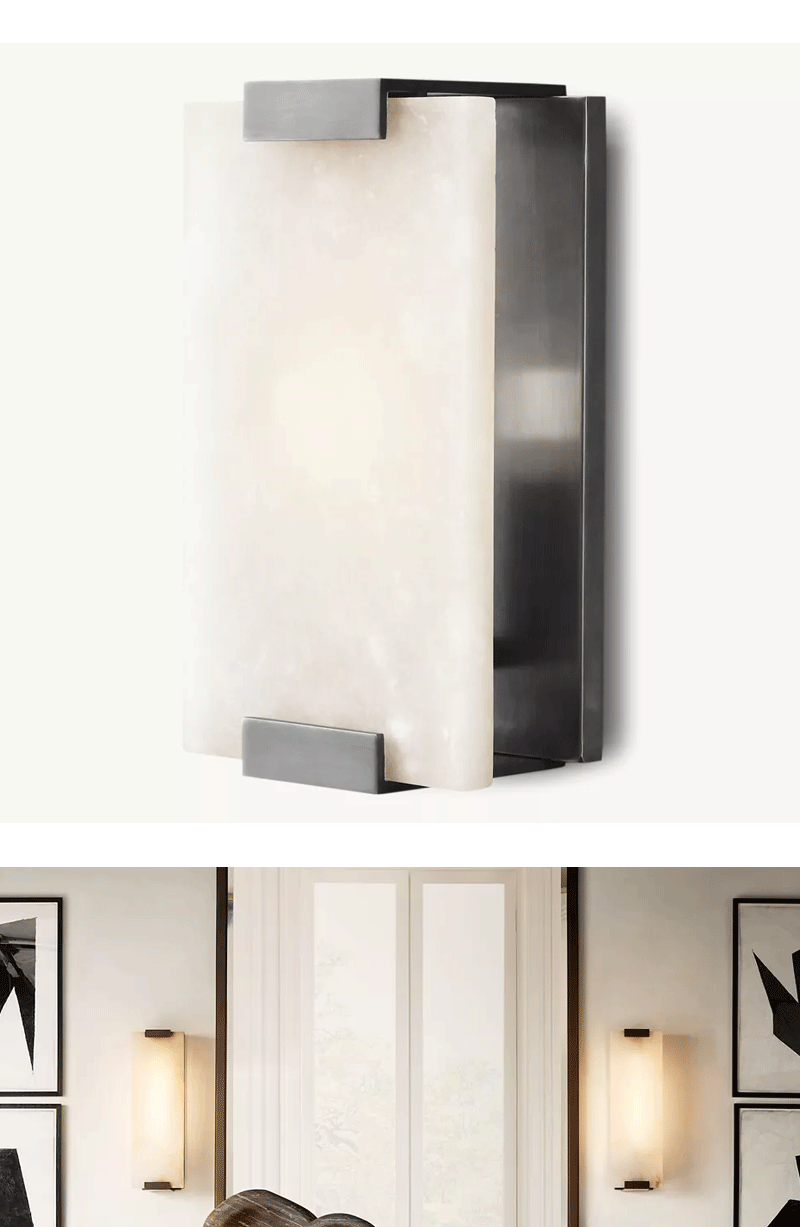 美式轻奢客厅餐厅雪花石黄铜壁灯