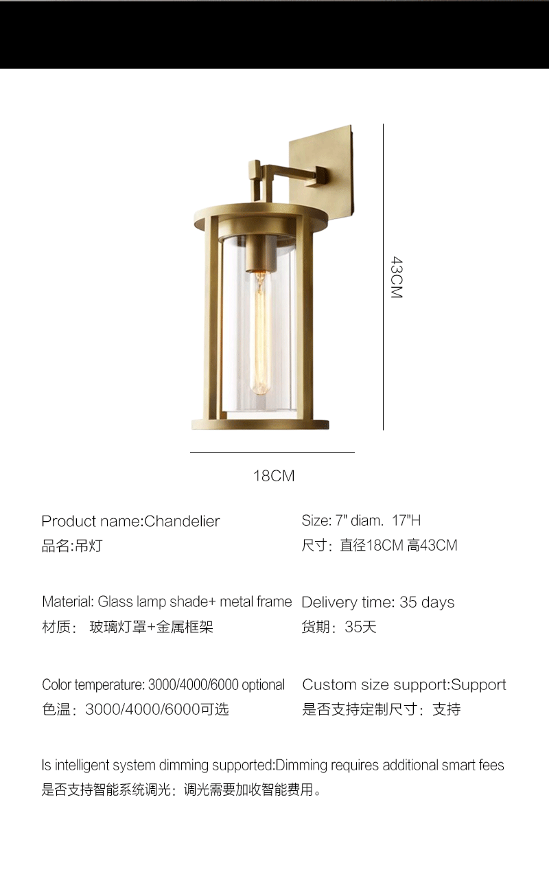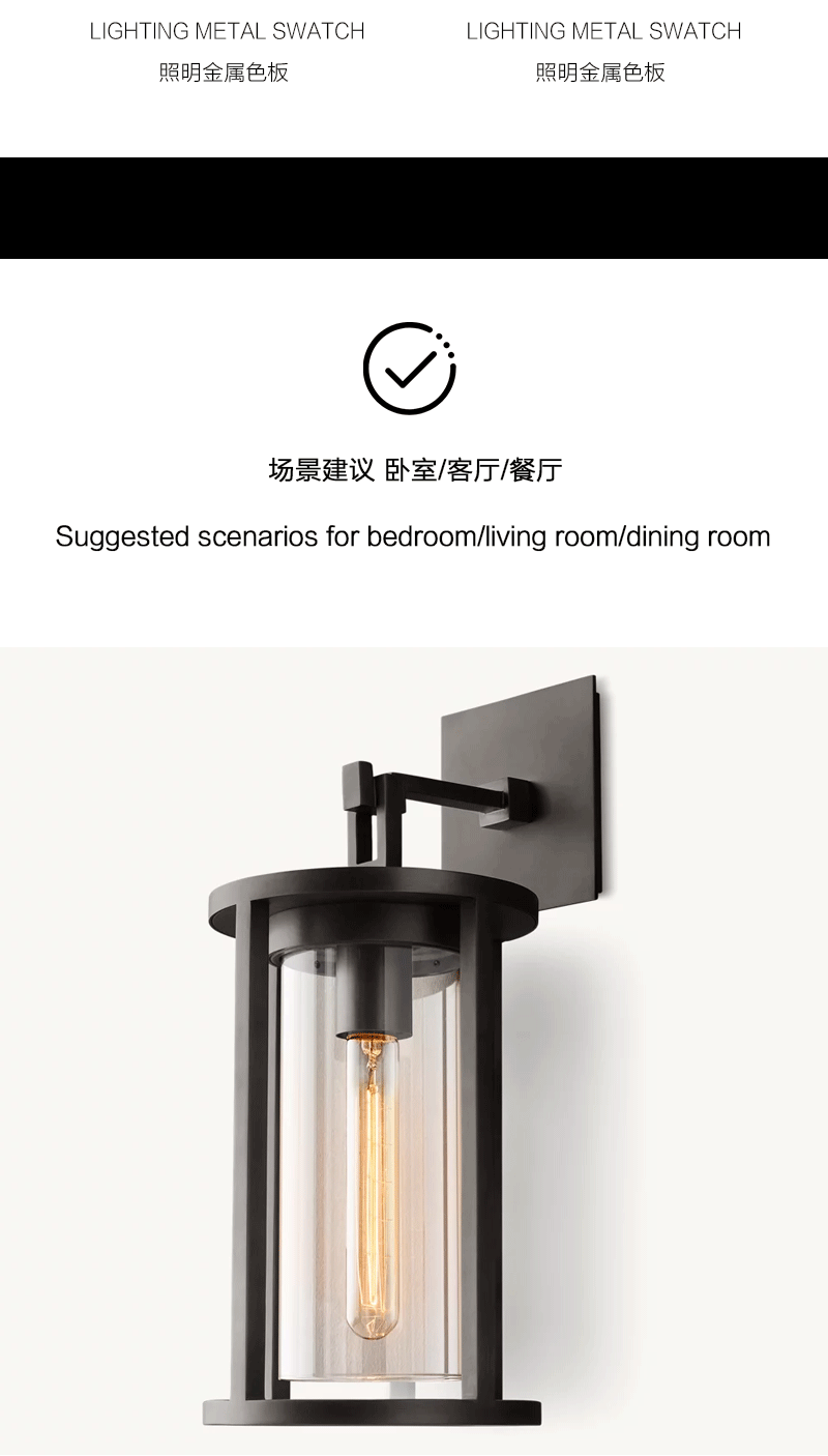美式轻奢客厅餐厅圆形玻璃灯罩壁灯