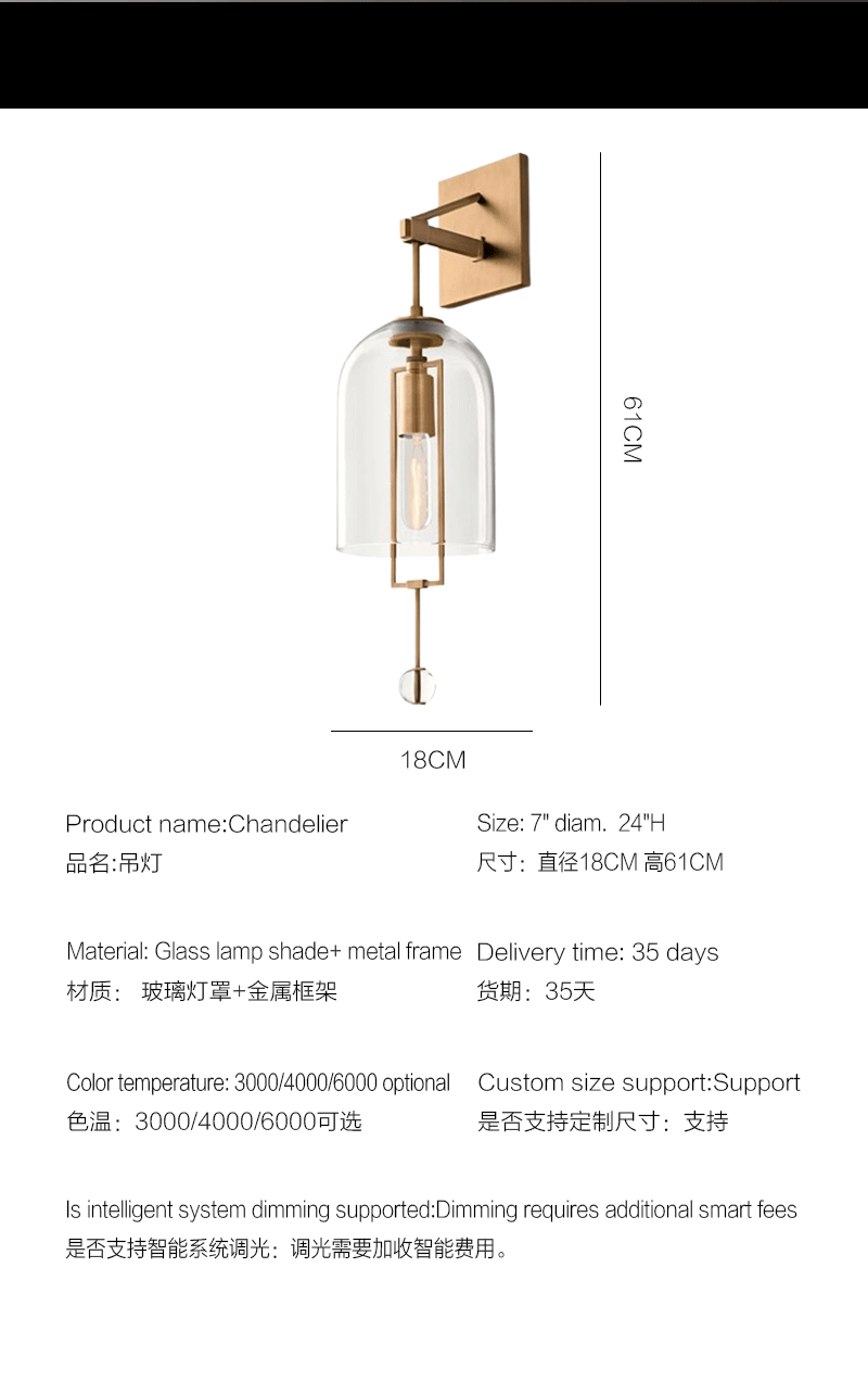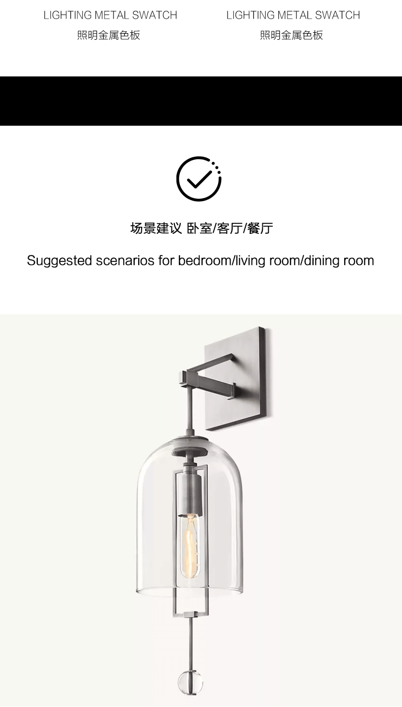 美式轻奢客厅餐厅支点玻璃灯罩壁灯