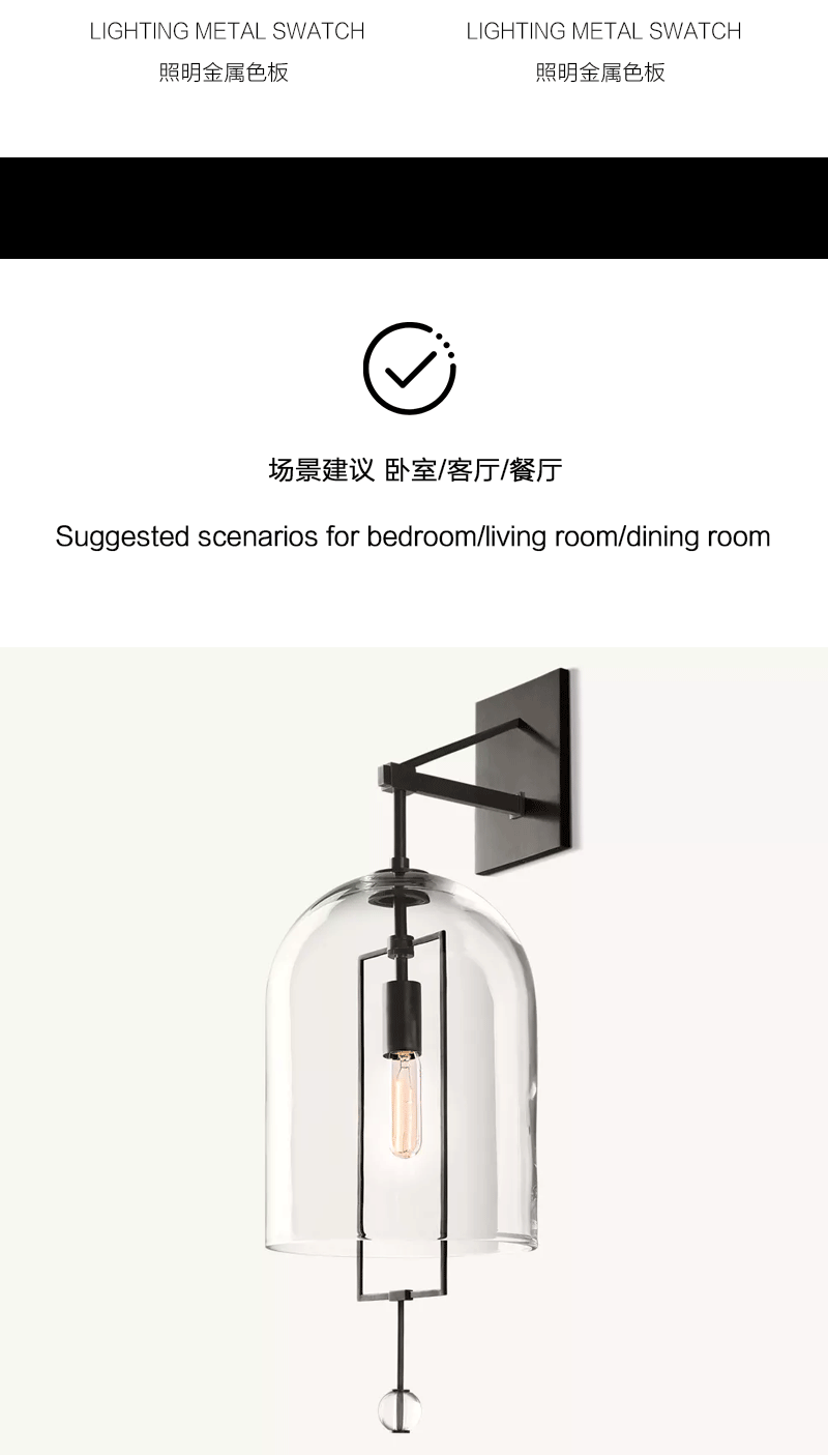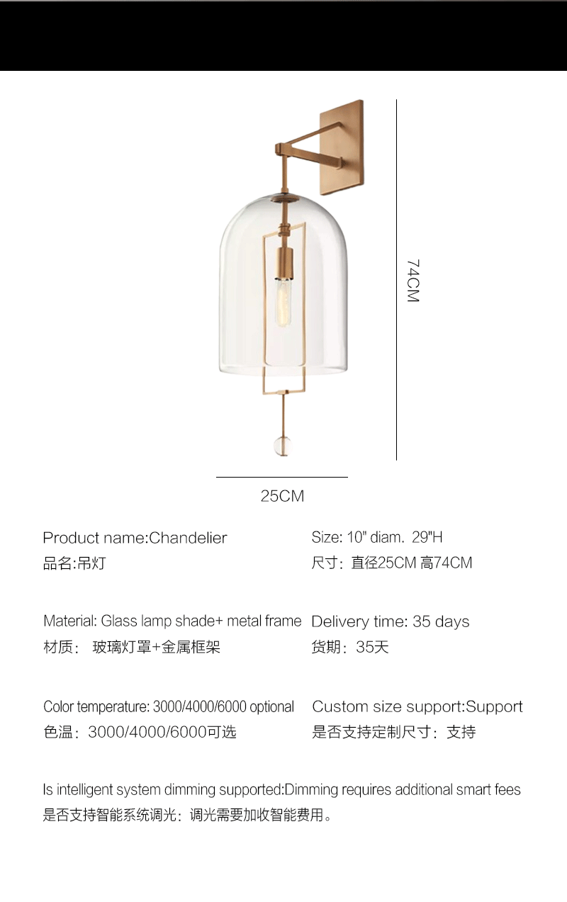 美式轻奢客厅餐厅支点玻璃灯罩大壁灯
