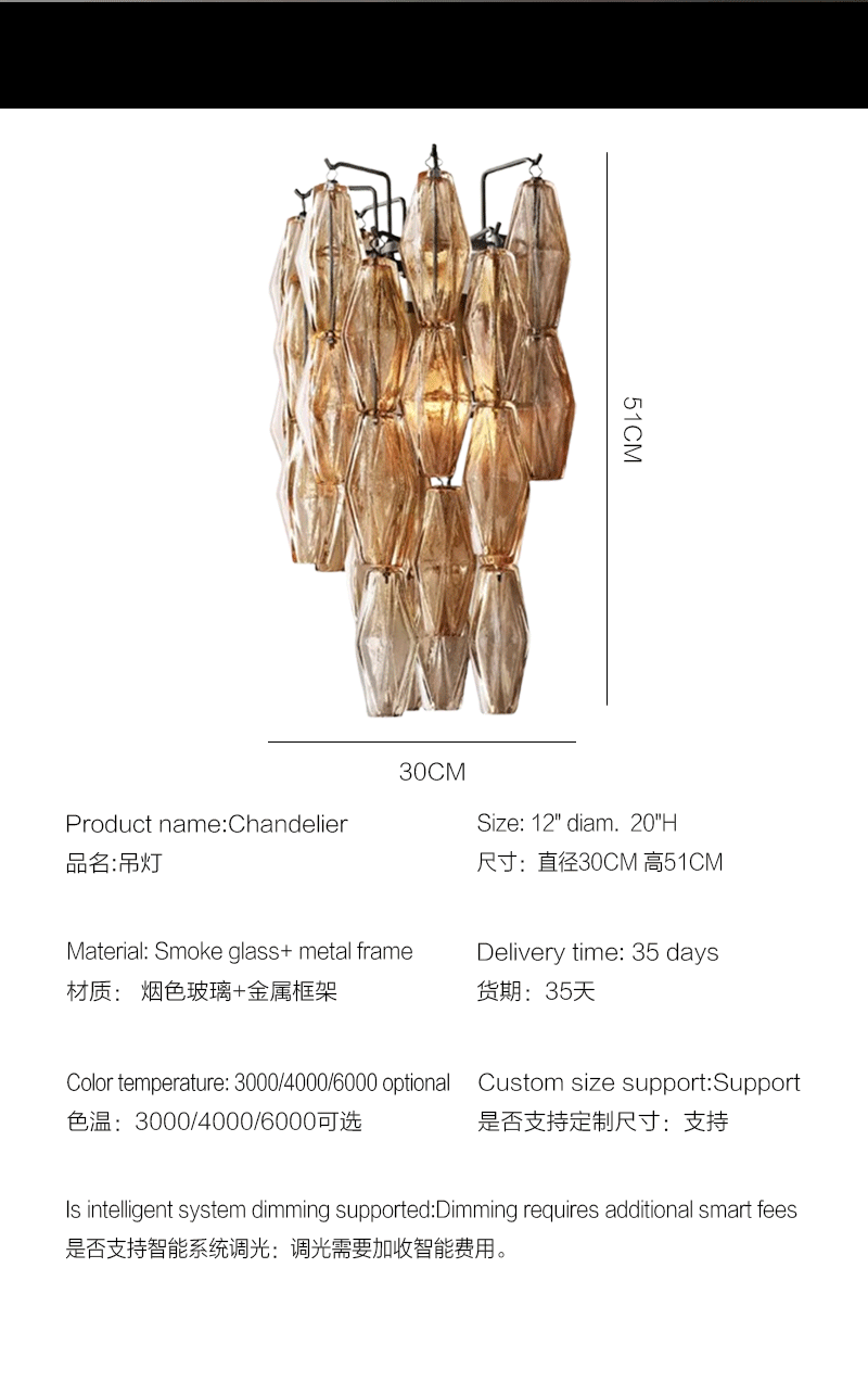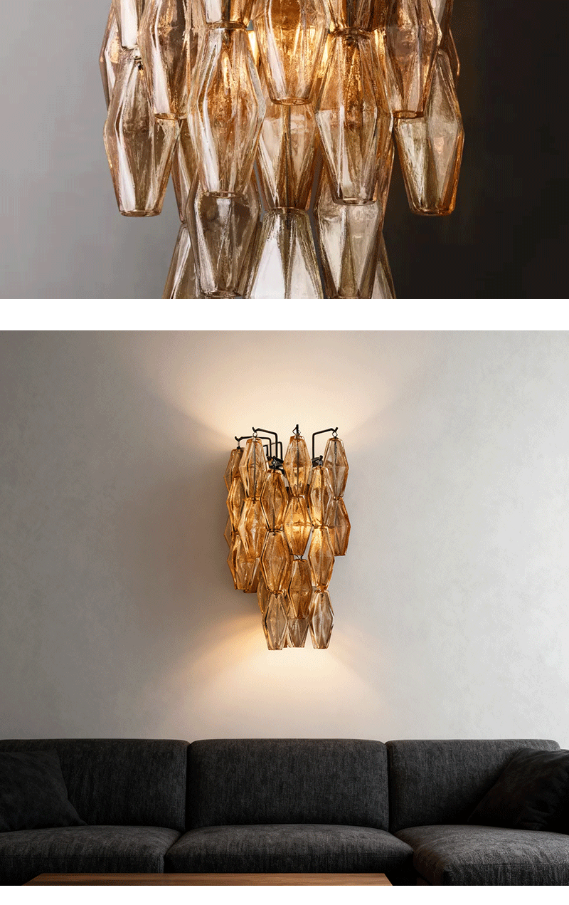 美式轻奢客厅卧室烟色玻璃灯罩壁灯