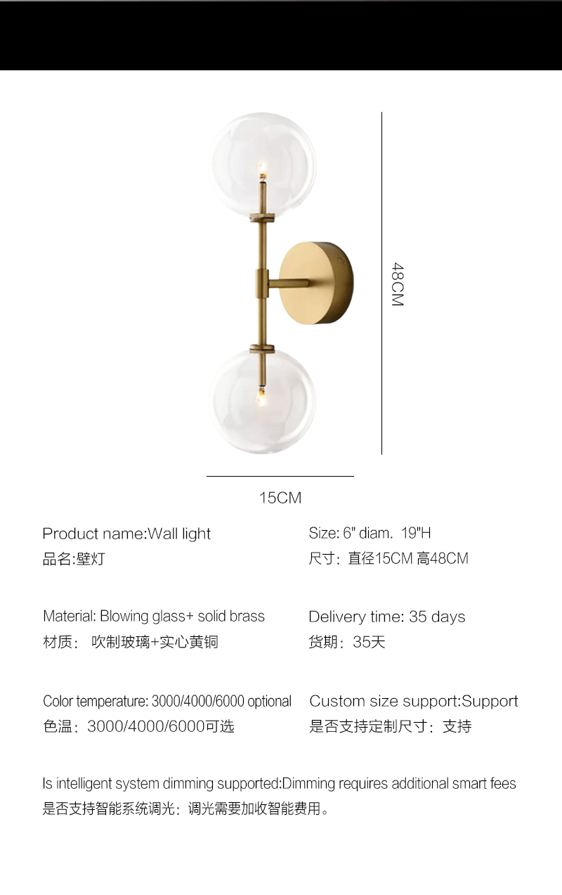 美式轻奢客厅餐厅线性玻璃球壁灯