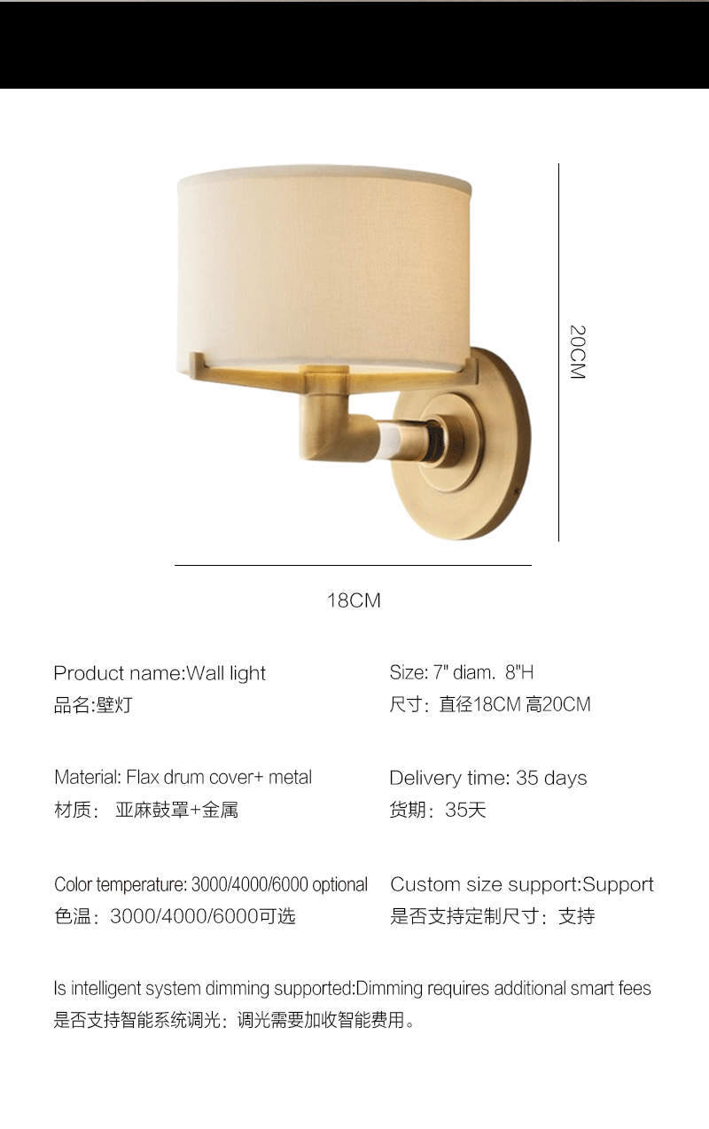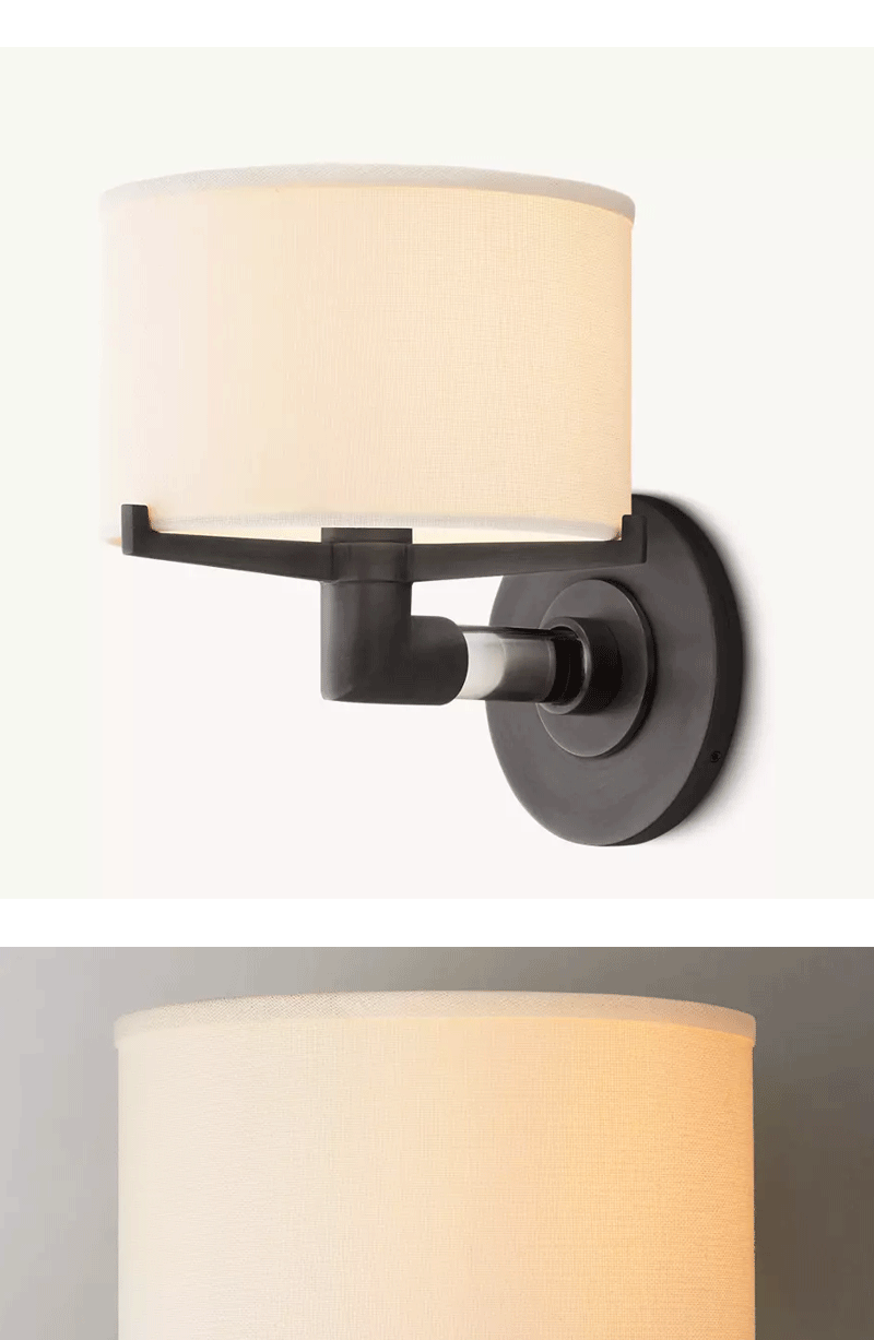 美式轻奢客厅餐厅亚麻鼓罩壁灯