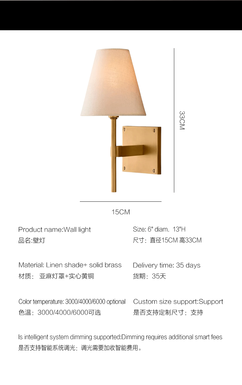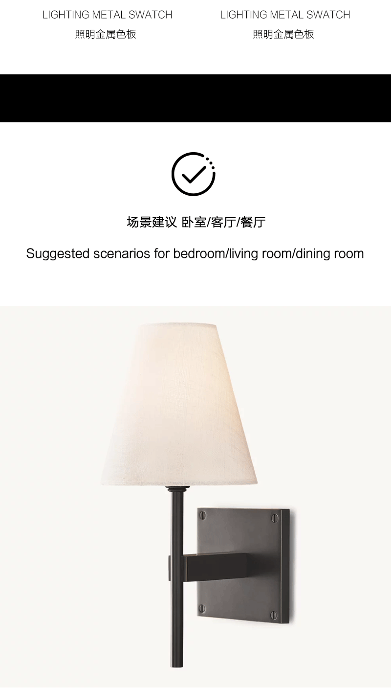 美式轻奢客厅餐厅亚麻灯罩遮阳壁灯