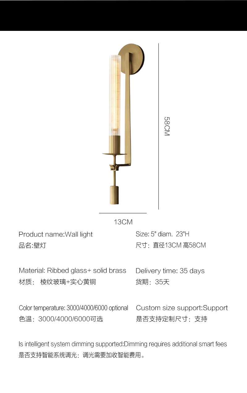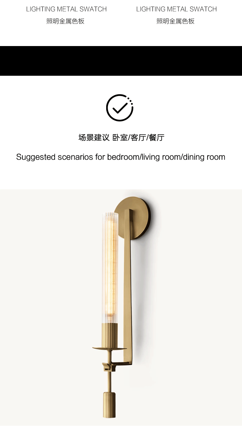 美式轻奢客厅餐厅棱纹玻璃金属壁灯