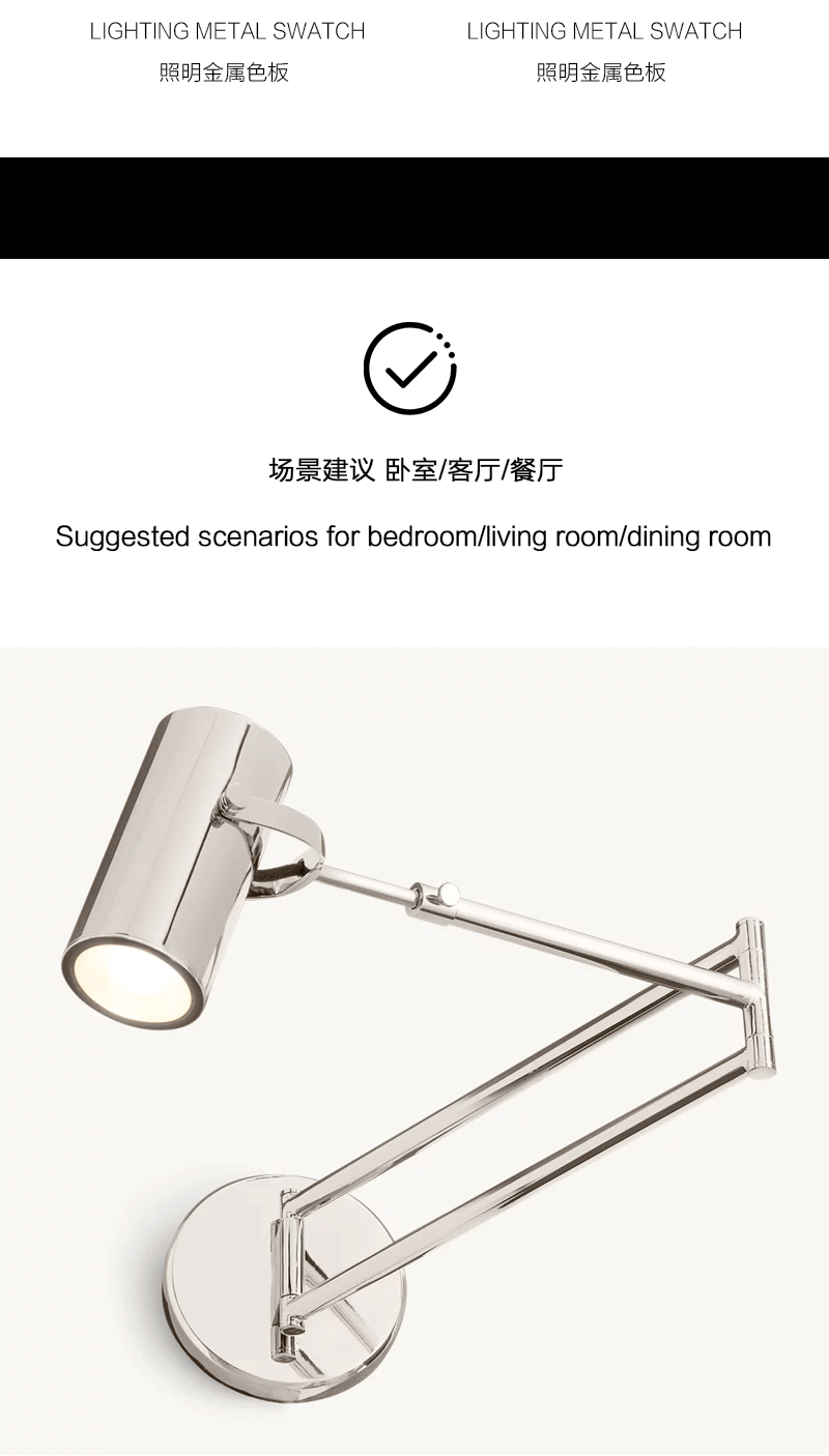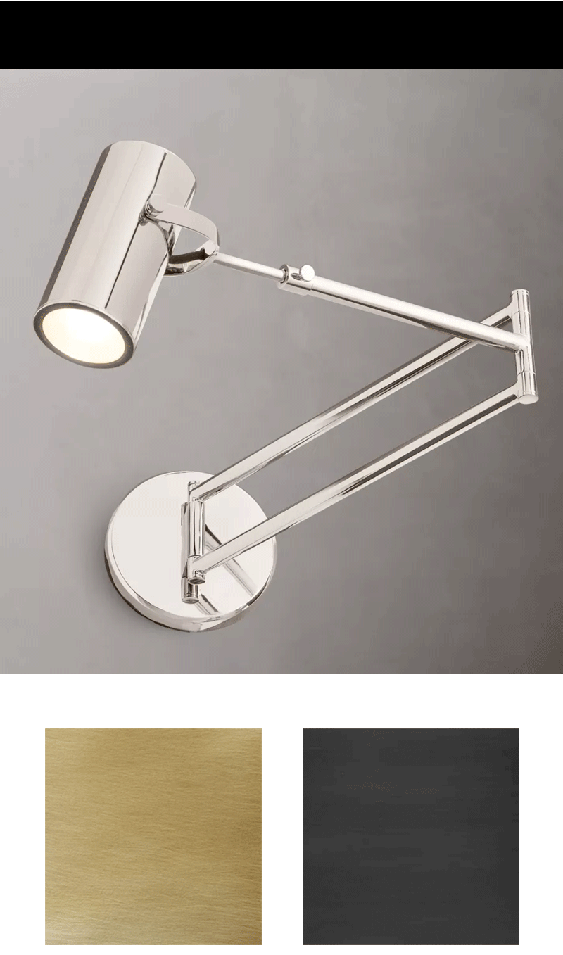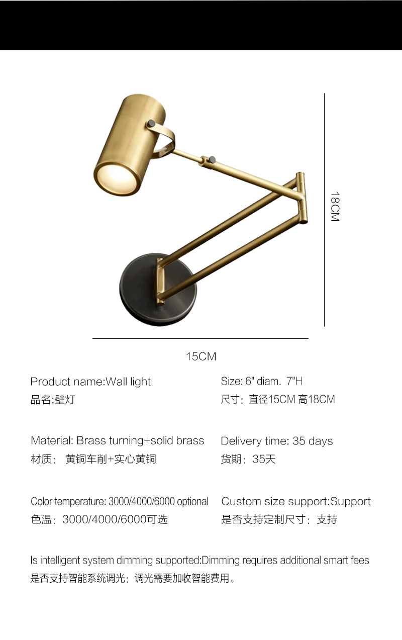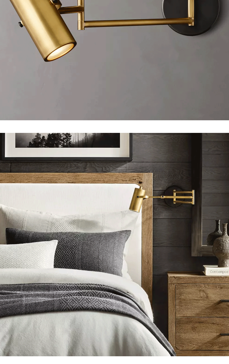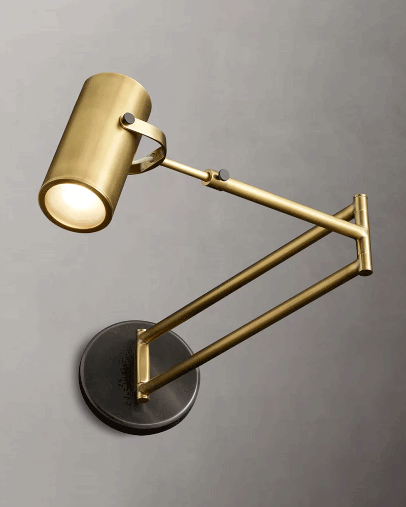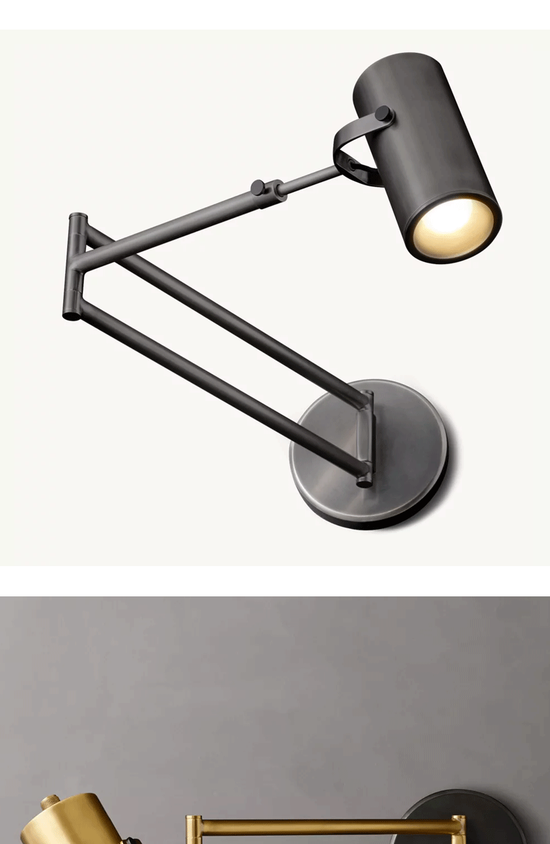 美式轻奢客厅餐厅实心黄铜摇臂壁灯