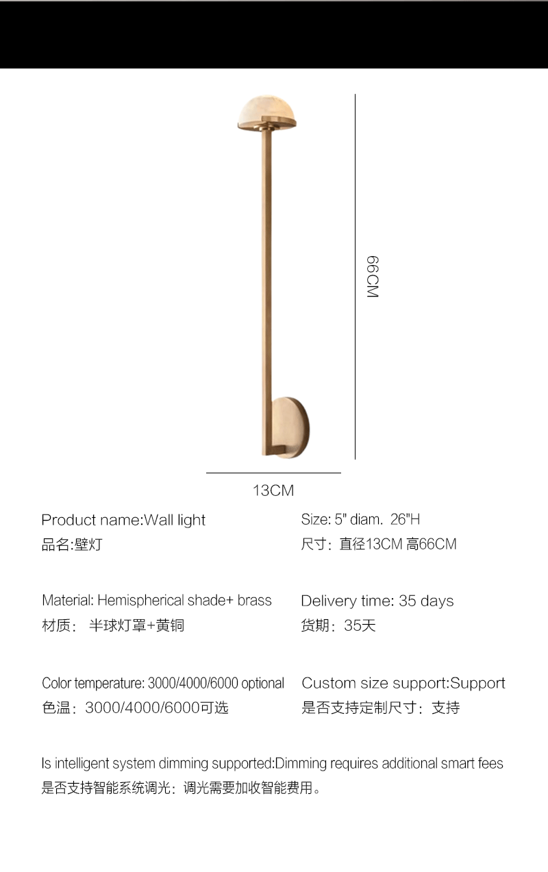 美式轻奢客厅卧室半球灯罩黄铜壁灯