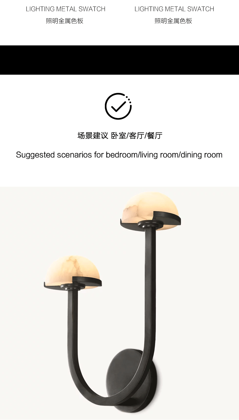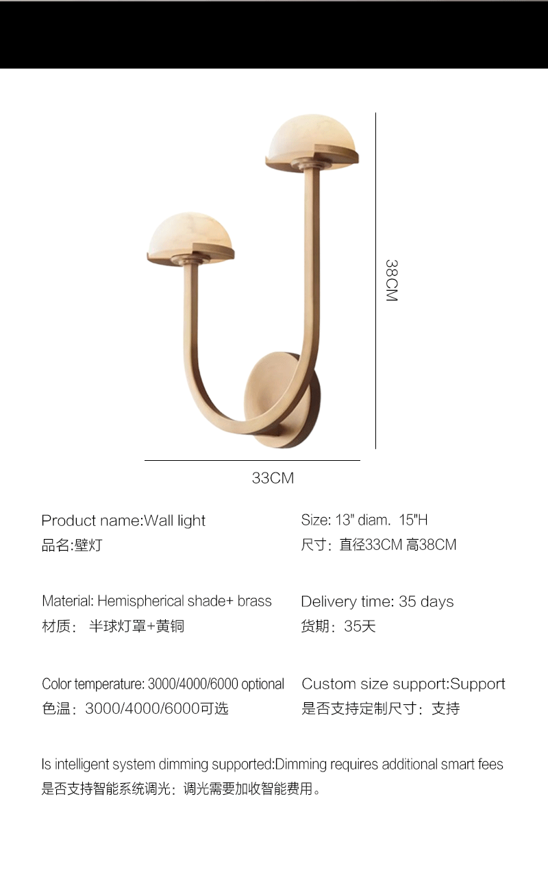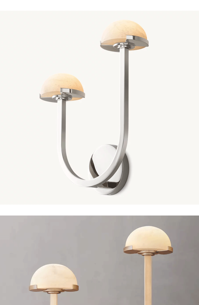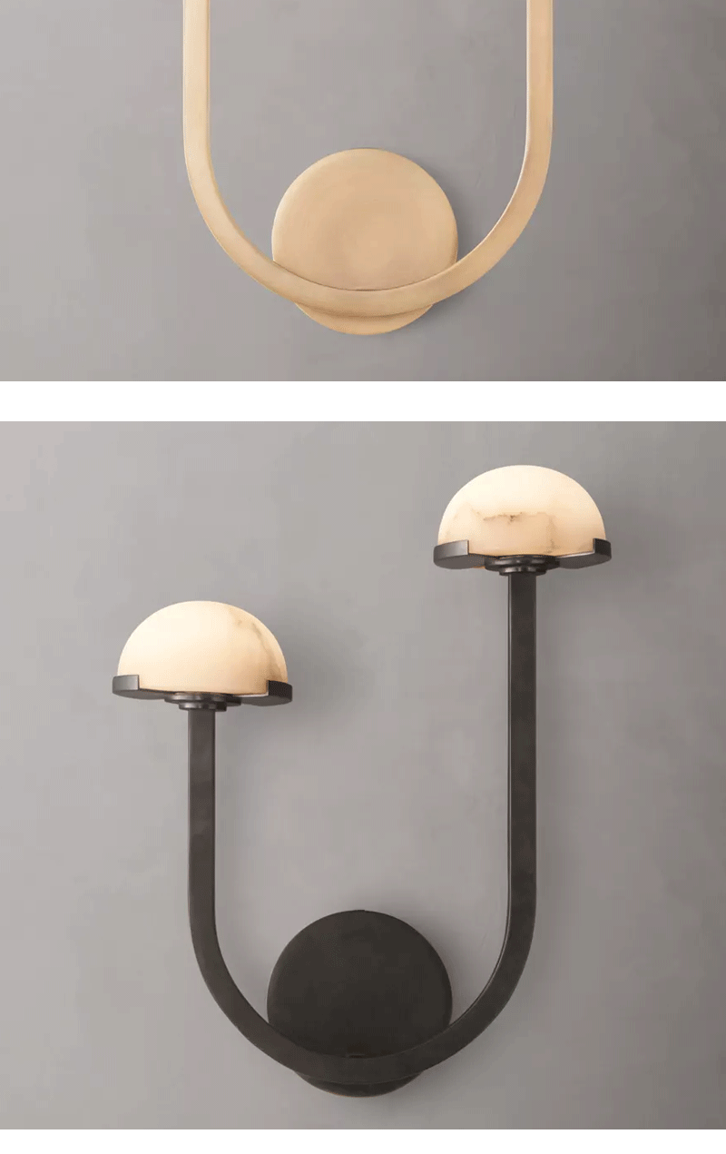 美式轻奢客厅餐厅半球灯罩黄铜双壁灯