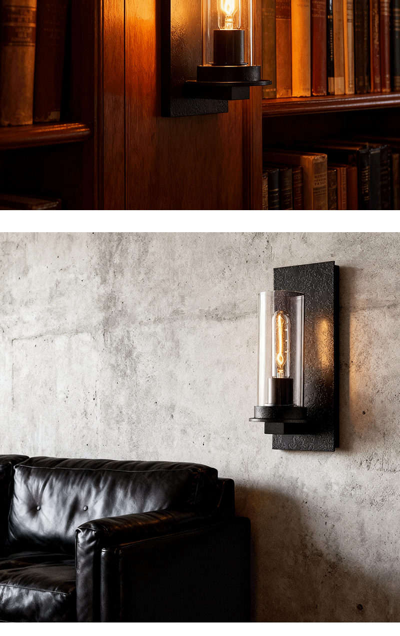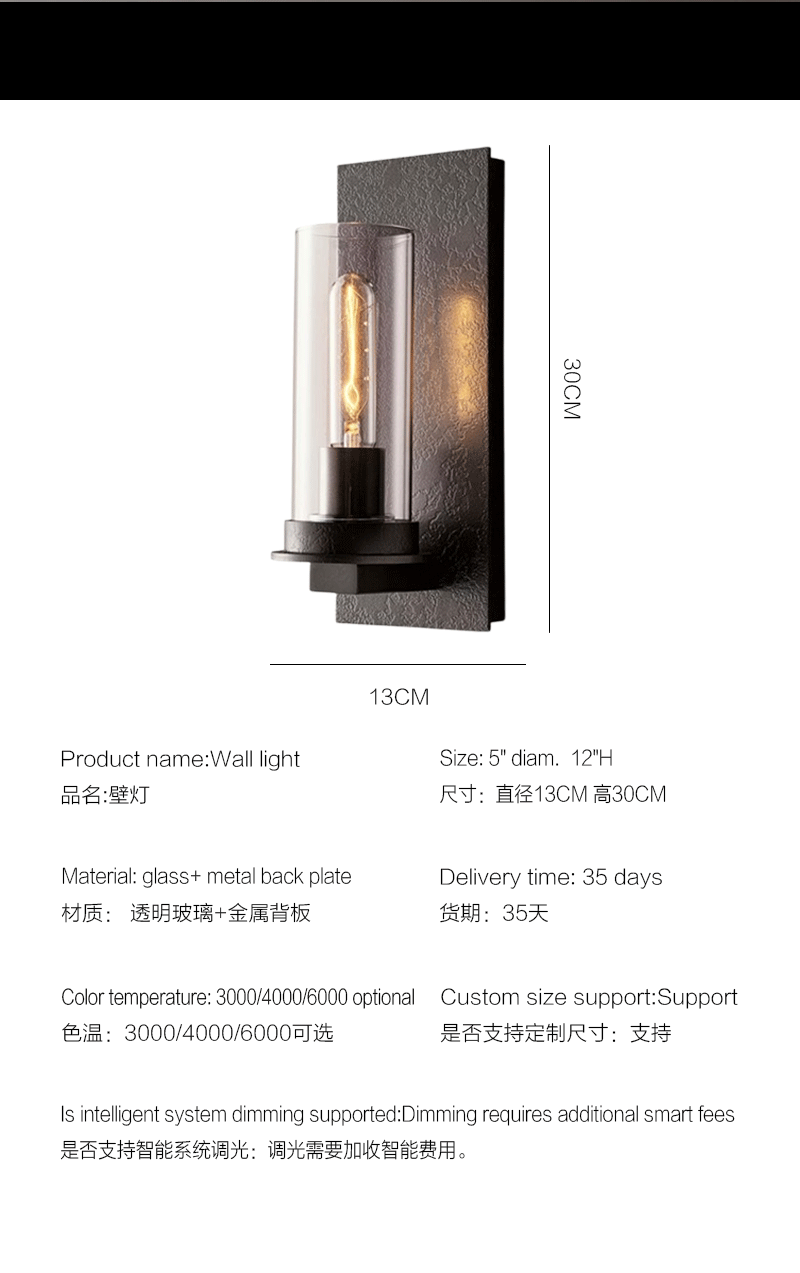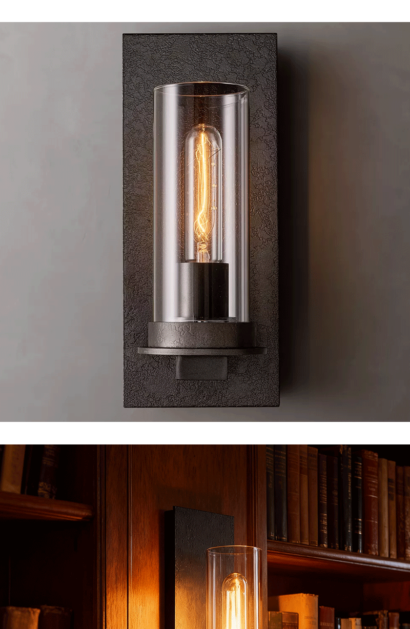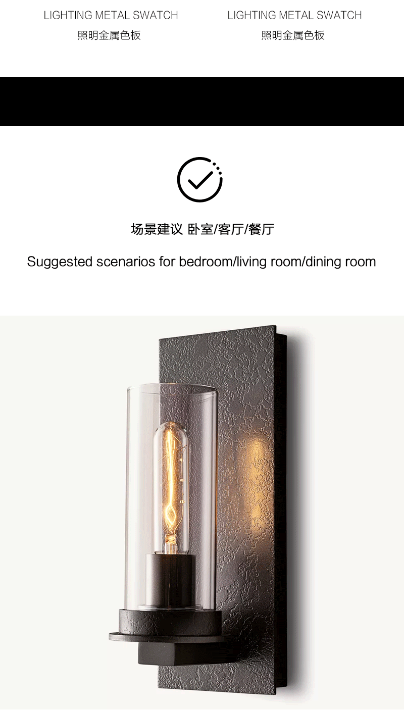 美式轻奢客厅餐厅金属背板透明玻璃壁灯