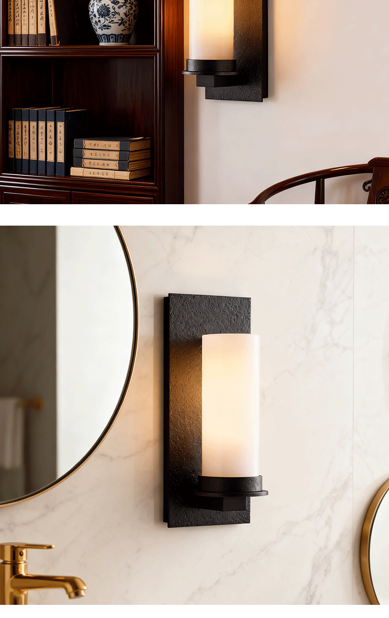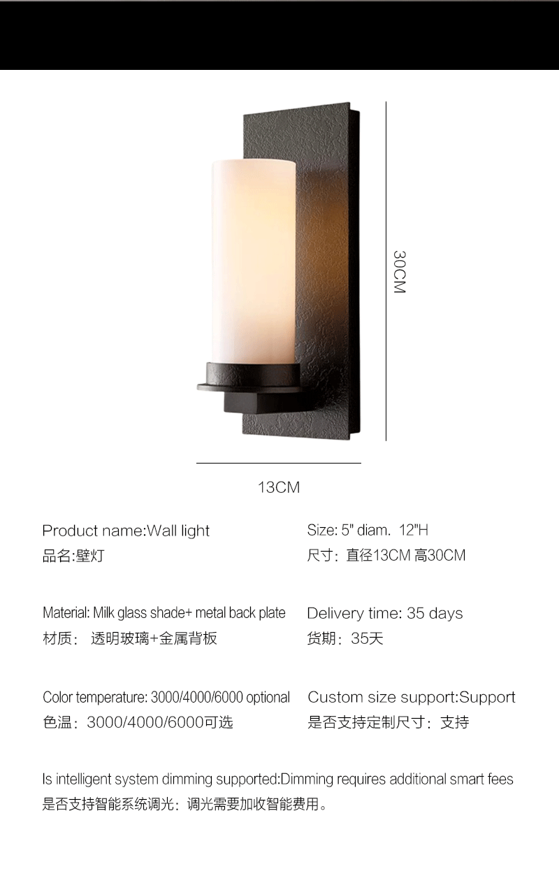 美式轻奢客厅餐厅金属背板牛奶玻璃壁灯