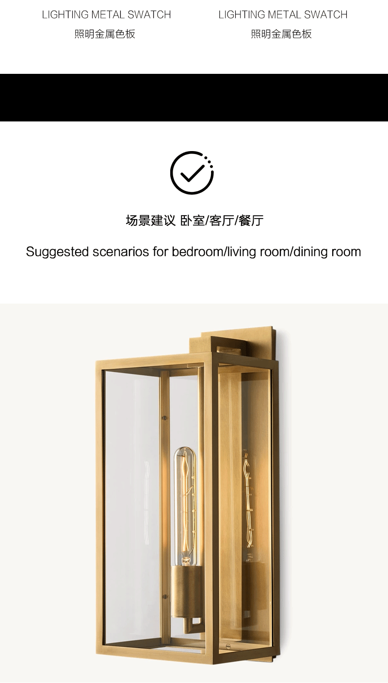美式轻奢客厅餐厅透明玻璃黄铜壁灯