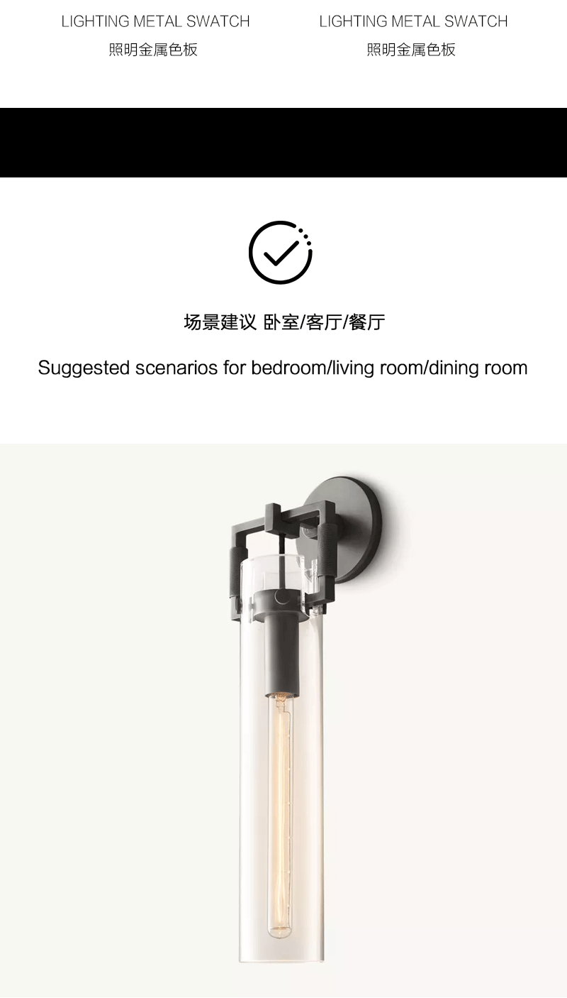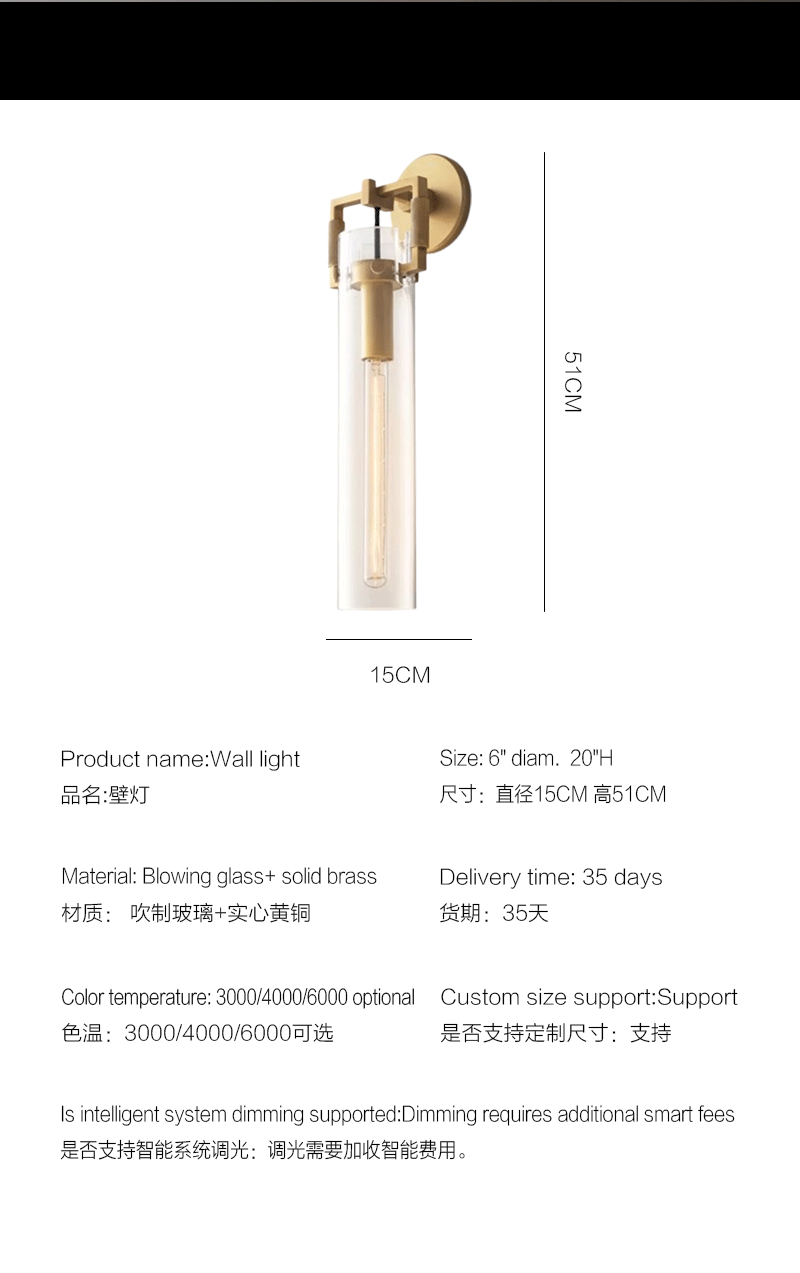 美式轻奢客厅餐厅吹制玻璃圆筒壁灯