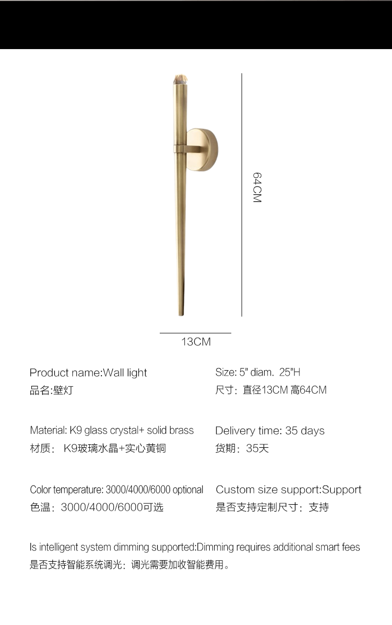 美式轻奢客厅柜台玻璃水晶黄铜壁灯