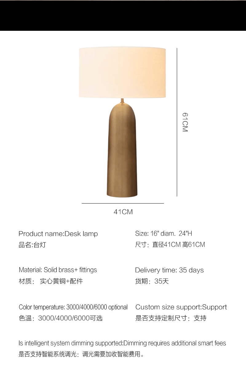 美式轻奢客厅餐厅金属黄铜锥形台灯