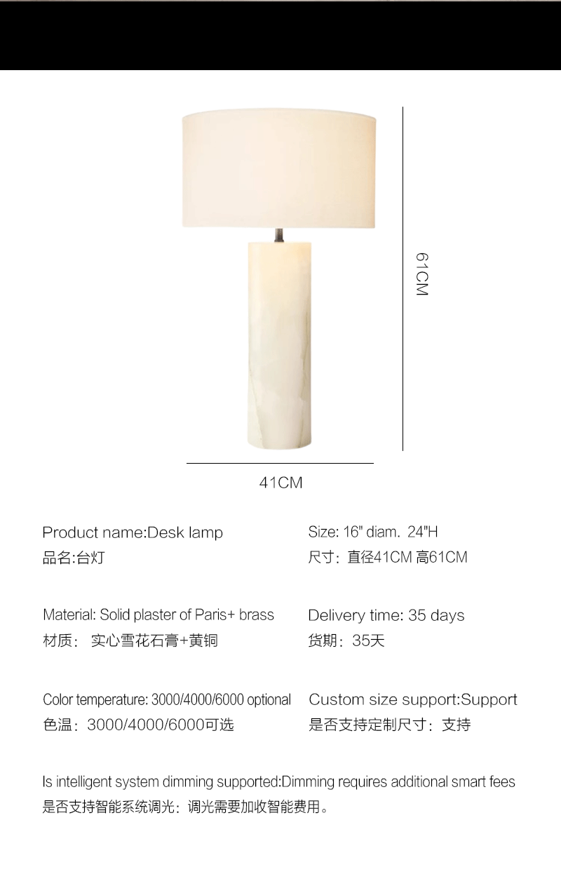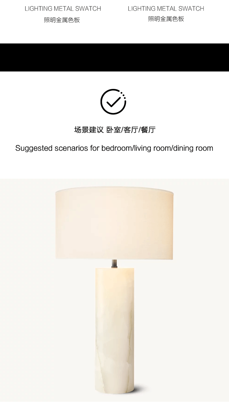 美式轻奢客厅餐厅实心雪花石台灯
