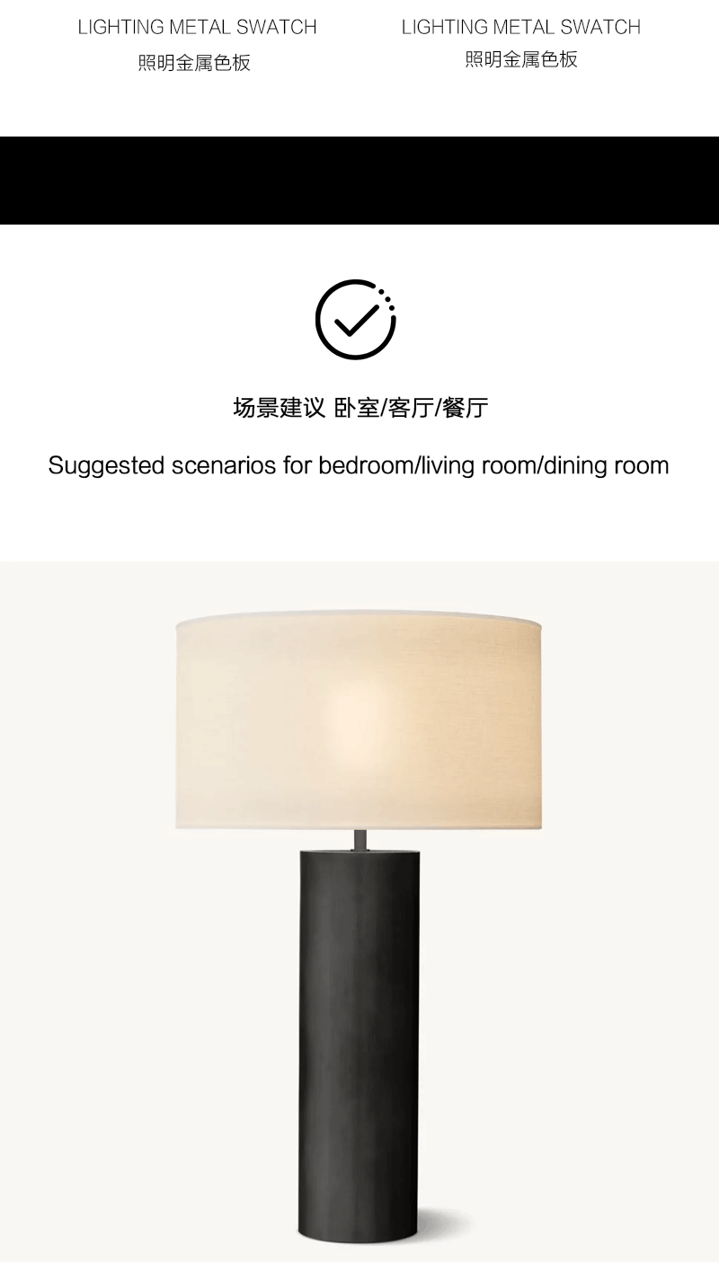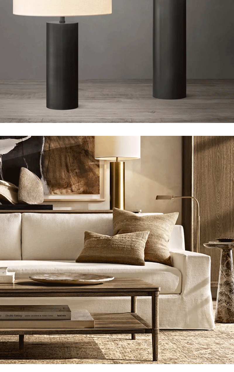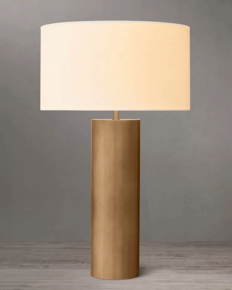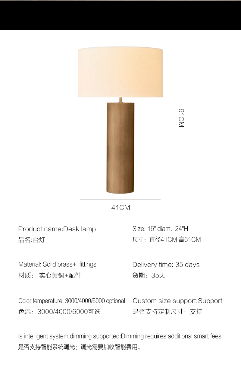 美式轻奢客厅餐厅实心黄铜圆柱台灯