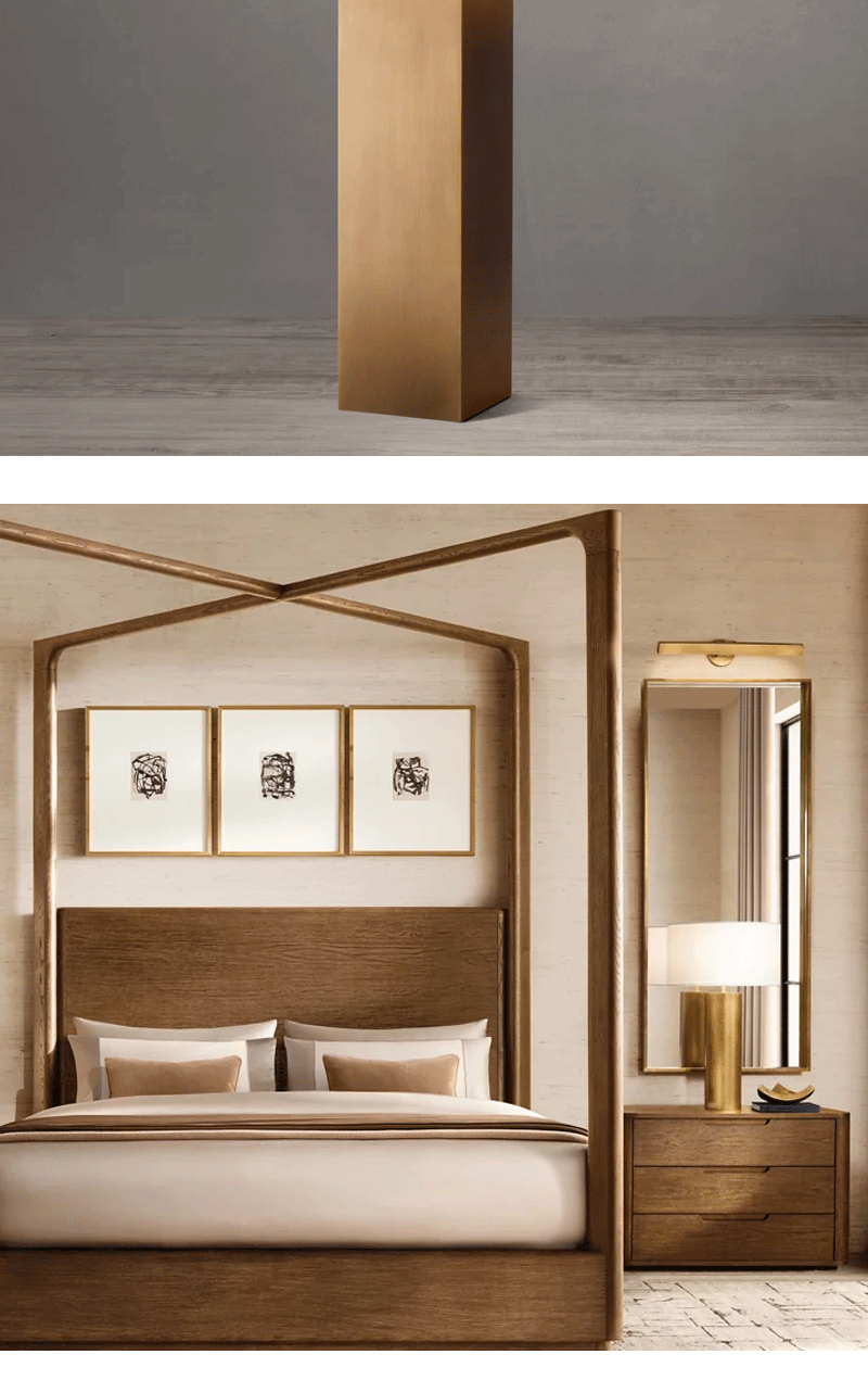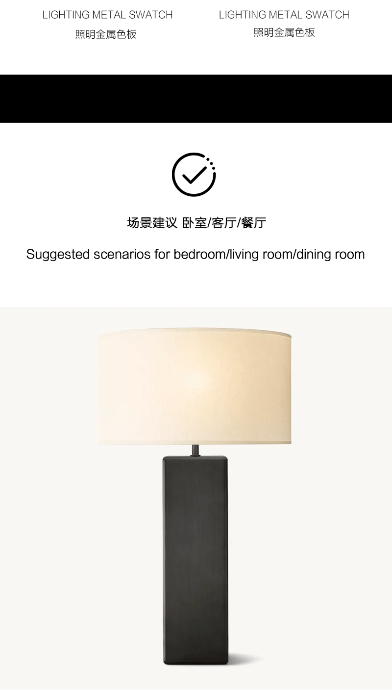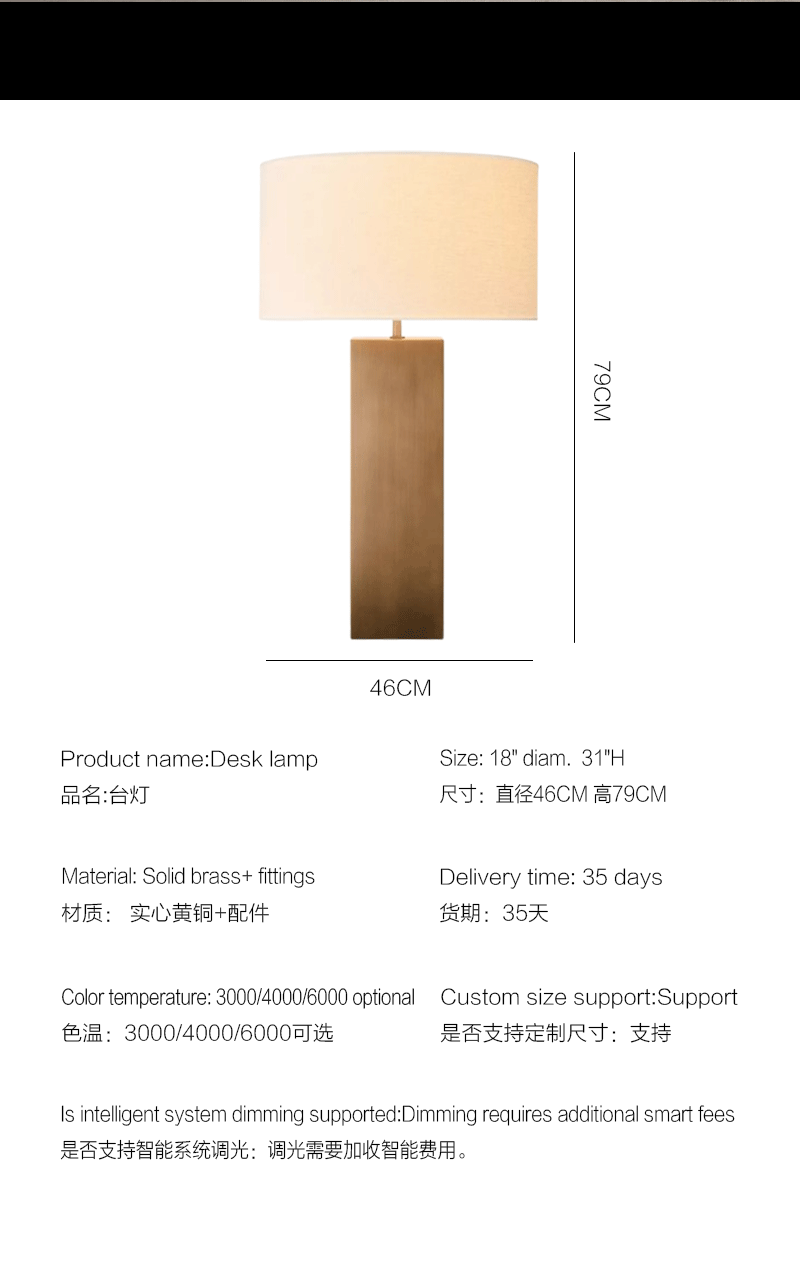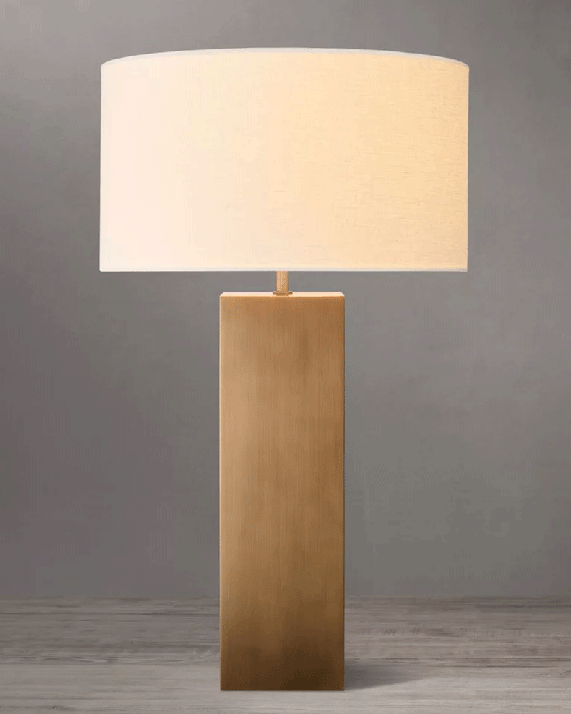 美式轻奢客厅餐厅实心黄铜方形台灯