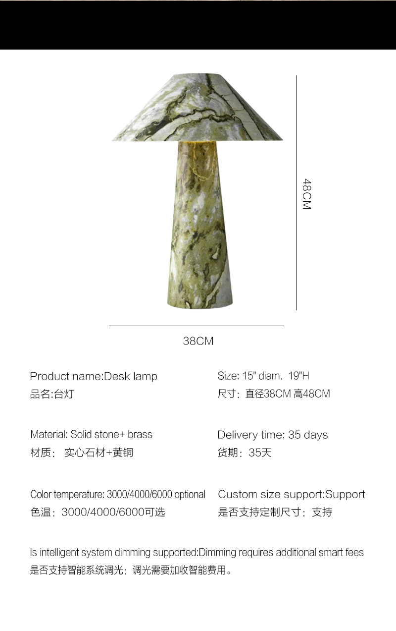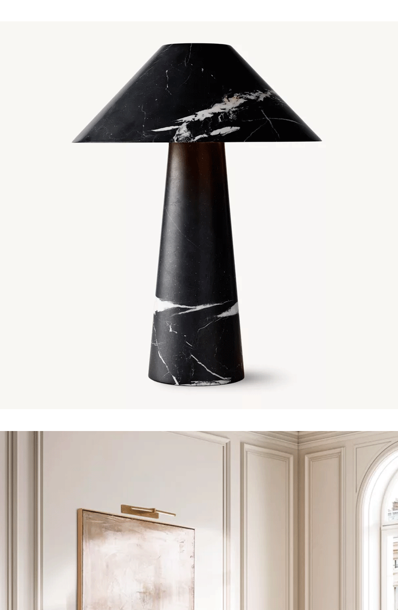 美式轻奢客厅卧室圆形实心石材台灯