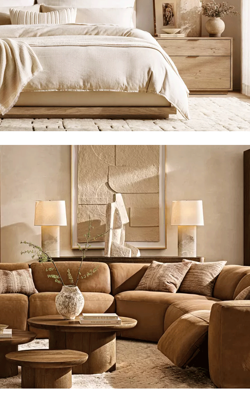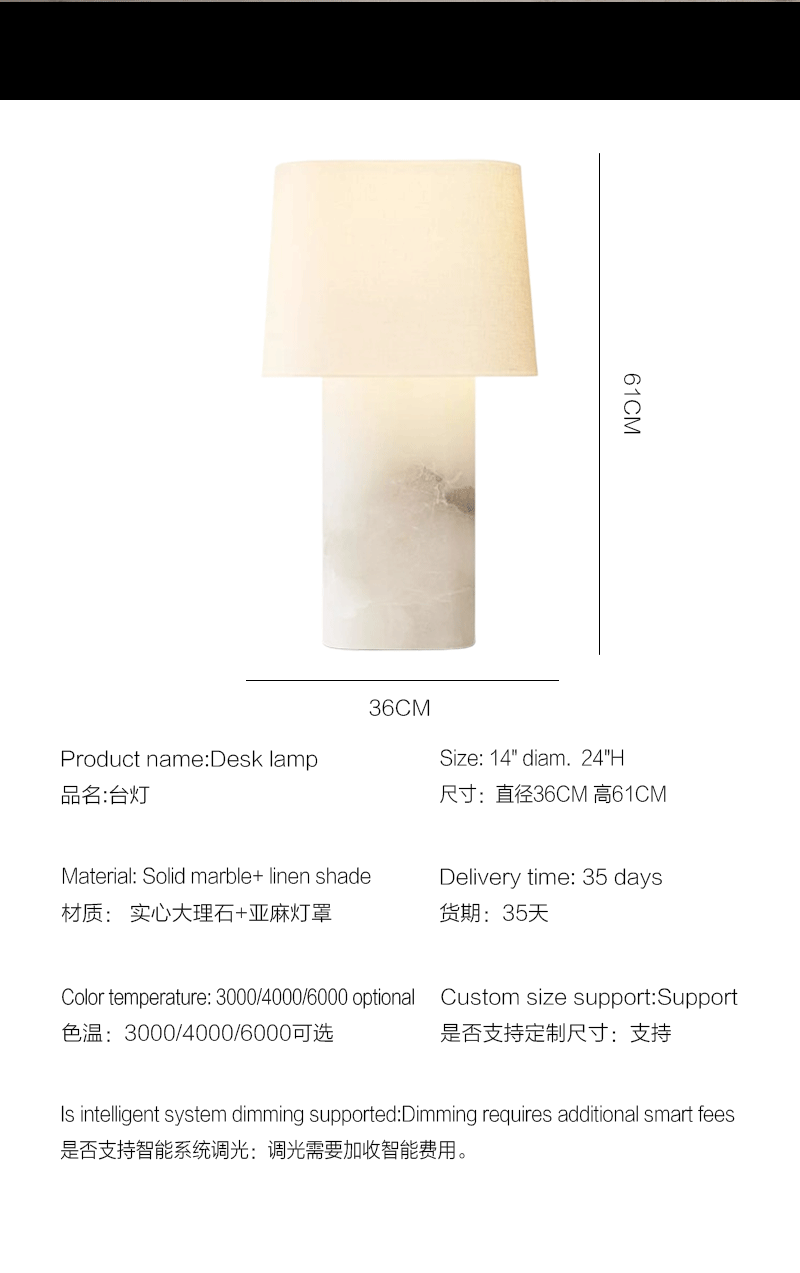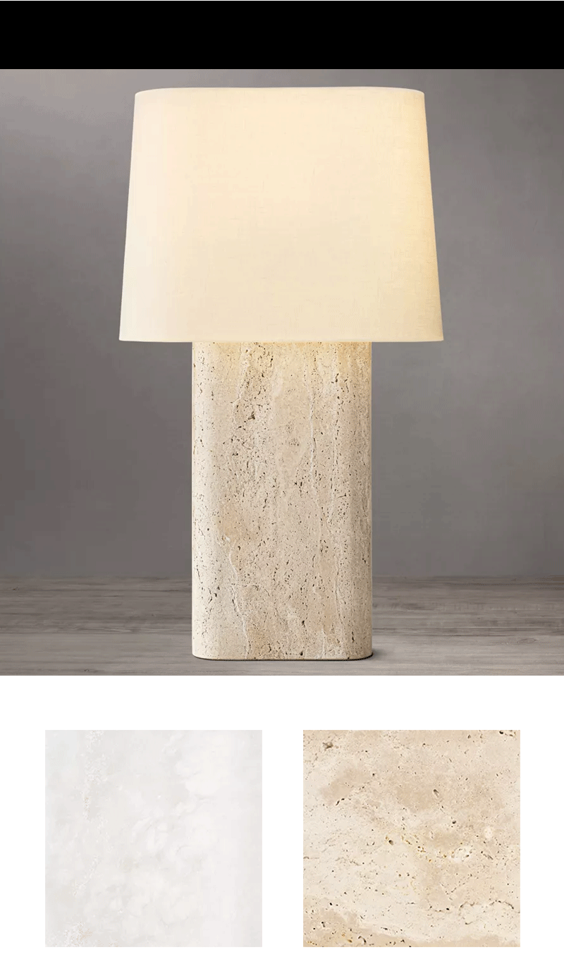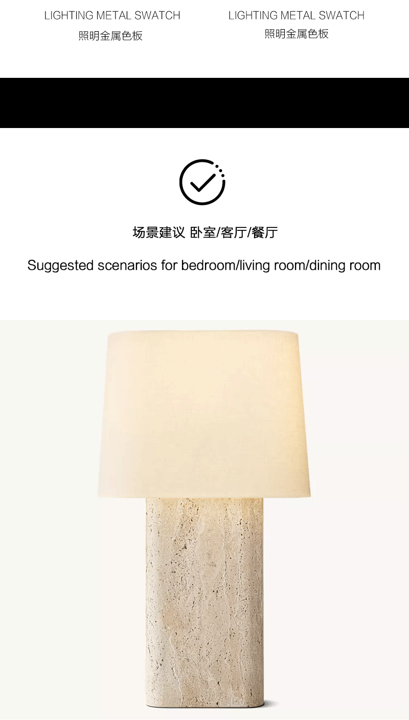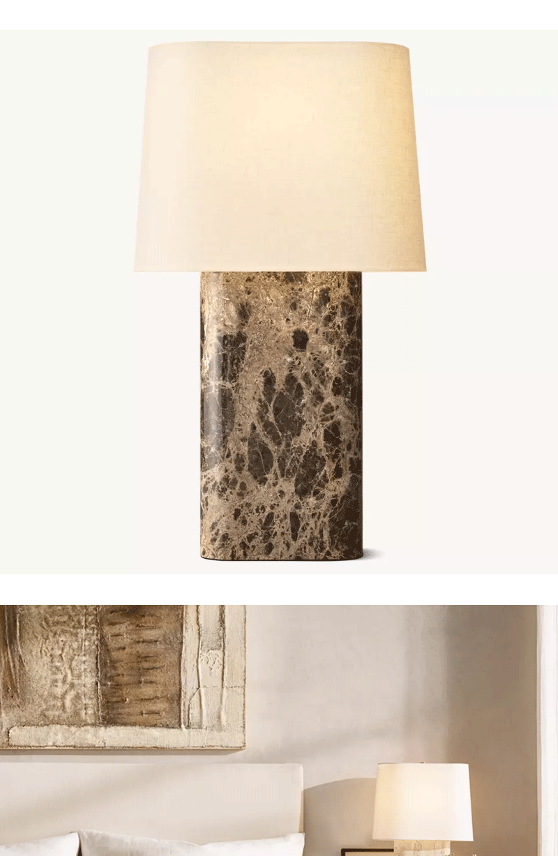 美式轻奢客厅卧室石材亚麻灯罩台灯