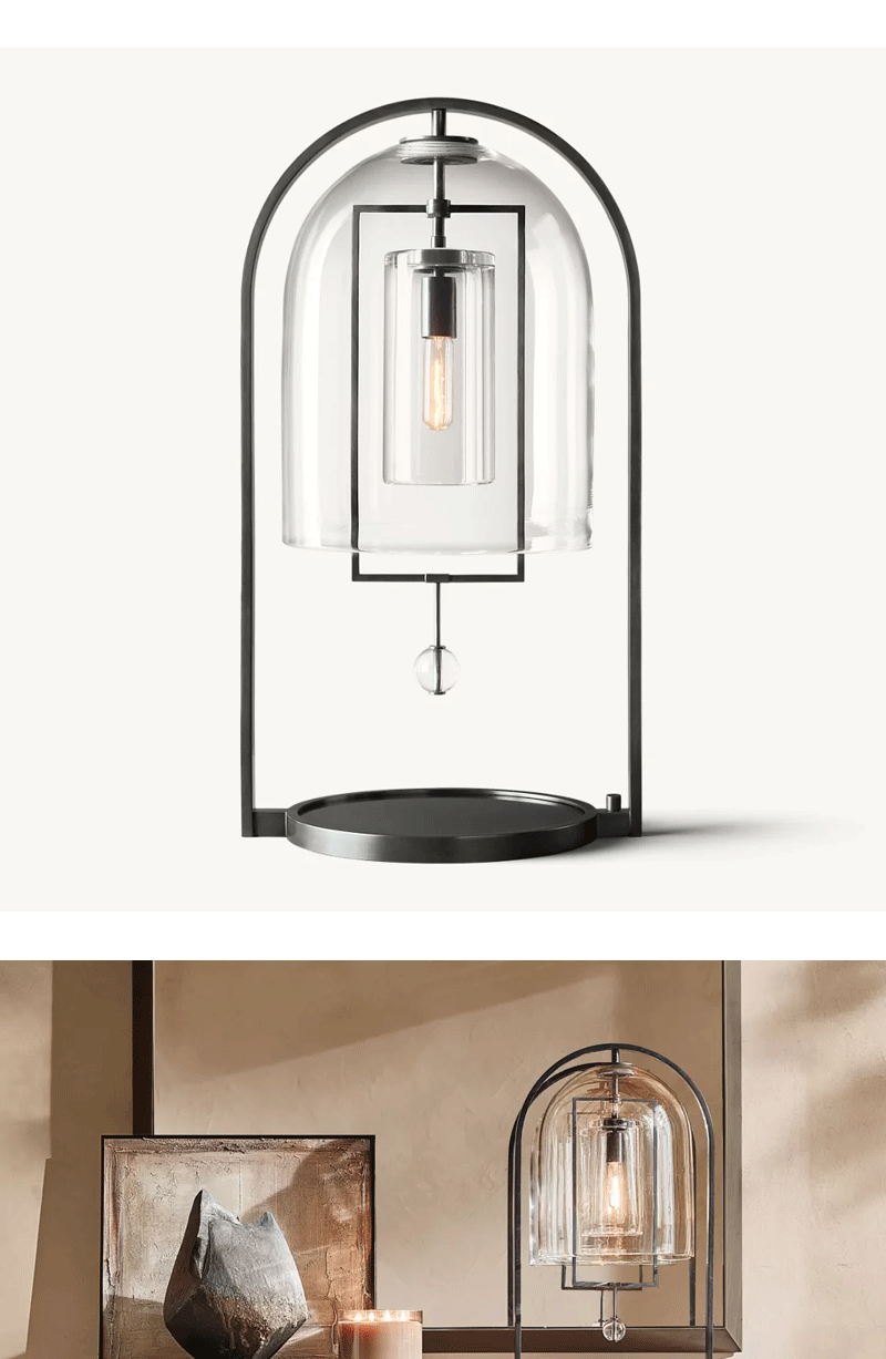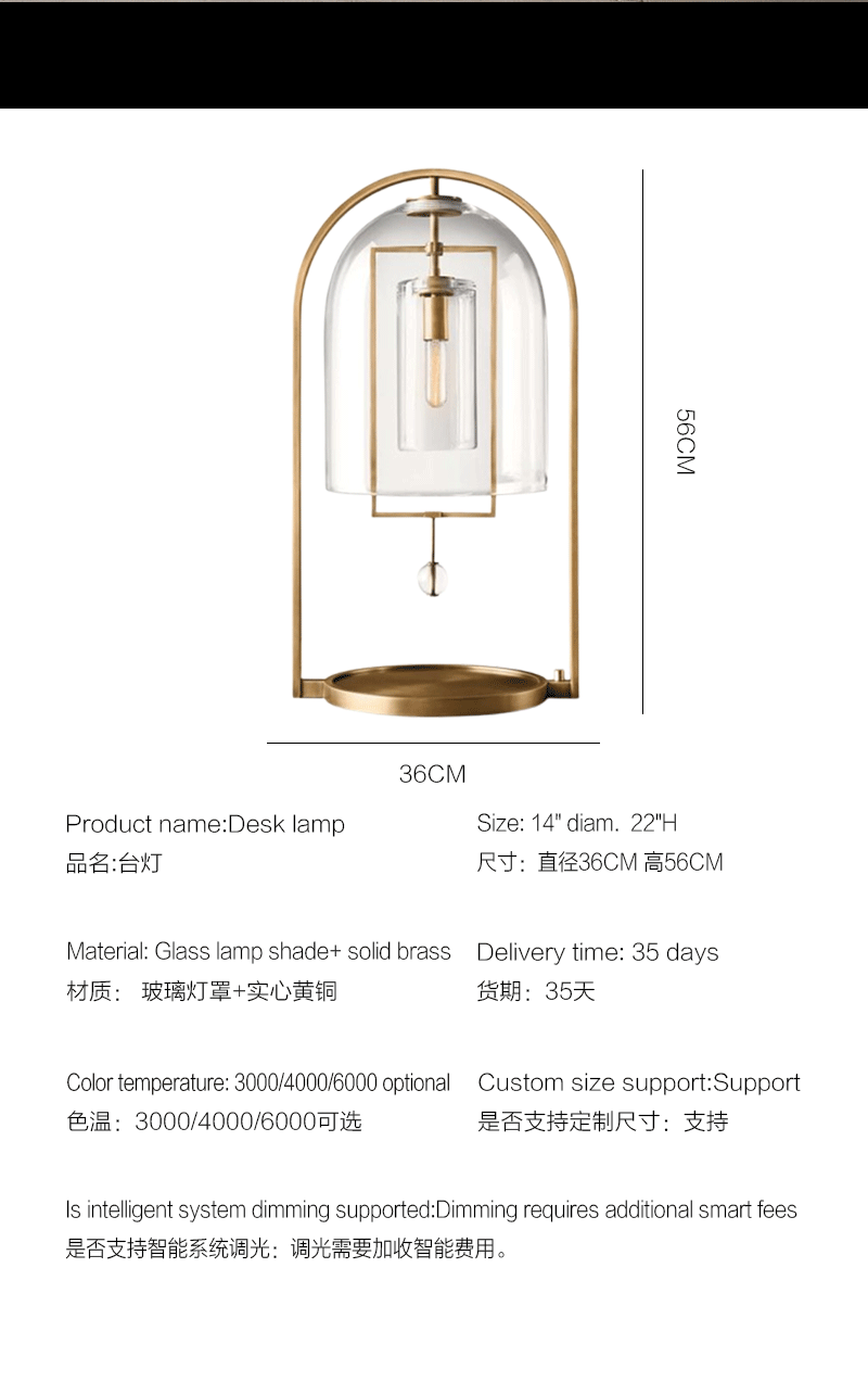 美式轻奢客厅卧室玻璃灯罩台灯
