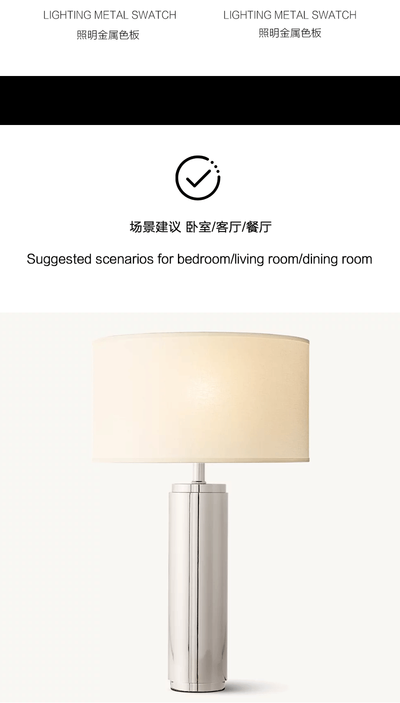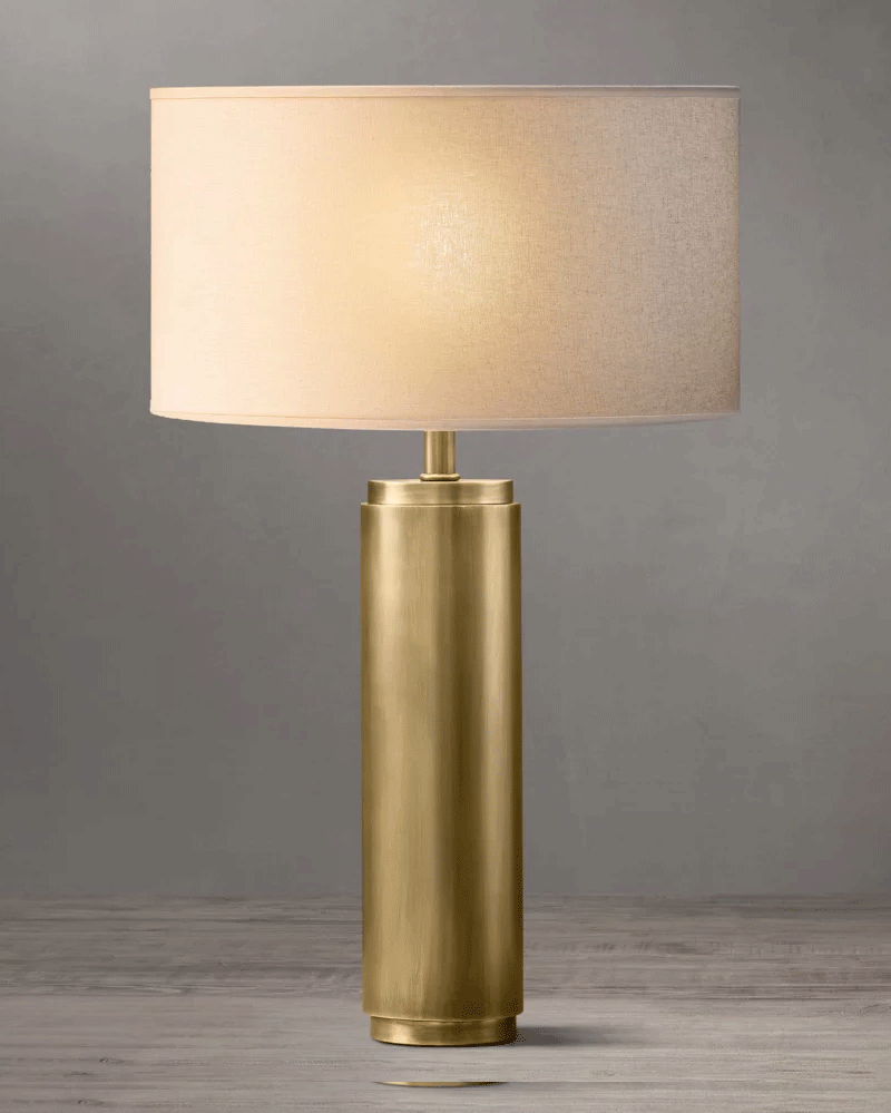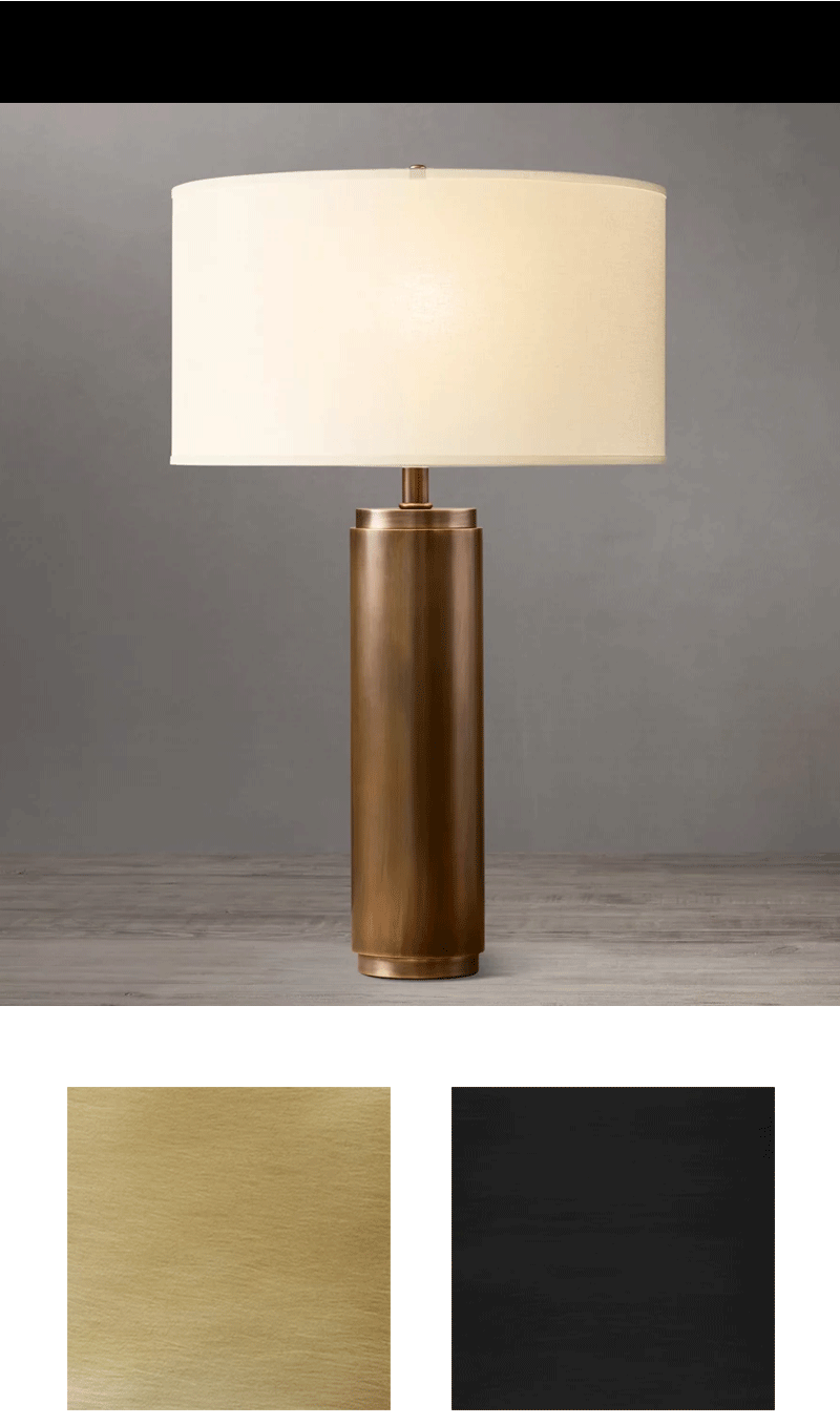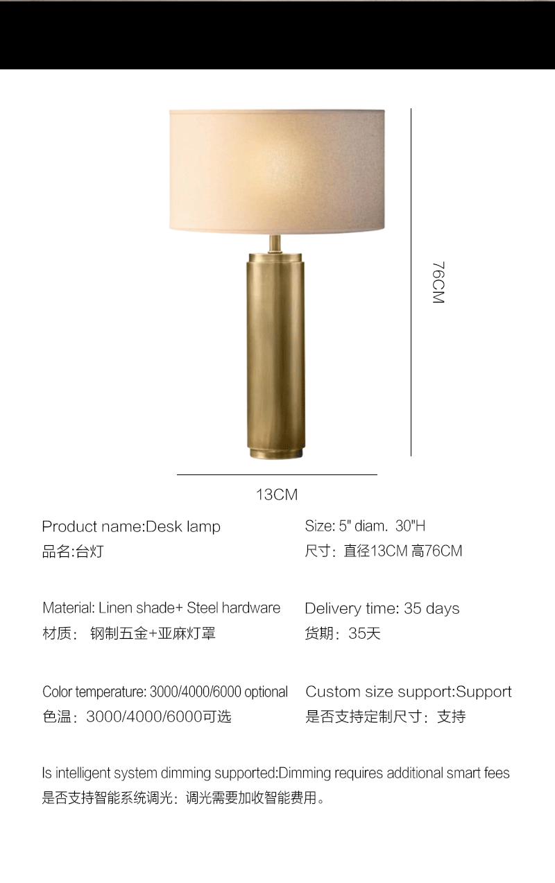 美式轻奢客厅卧室圆柱亚麻灯罩台灯