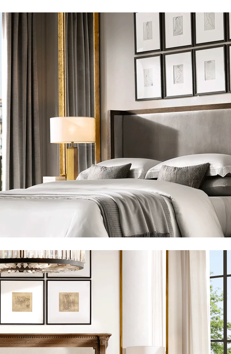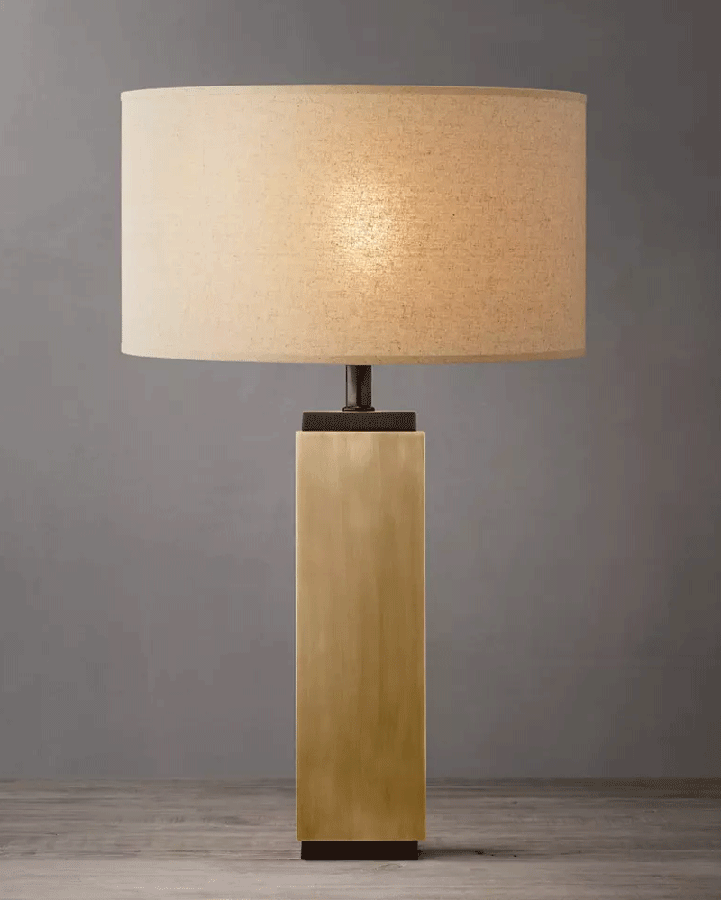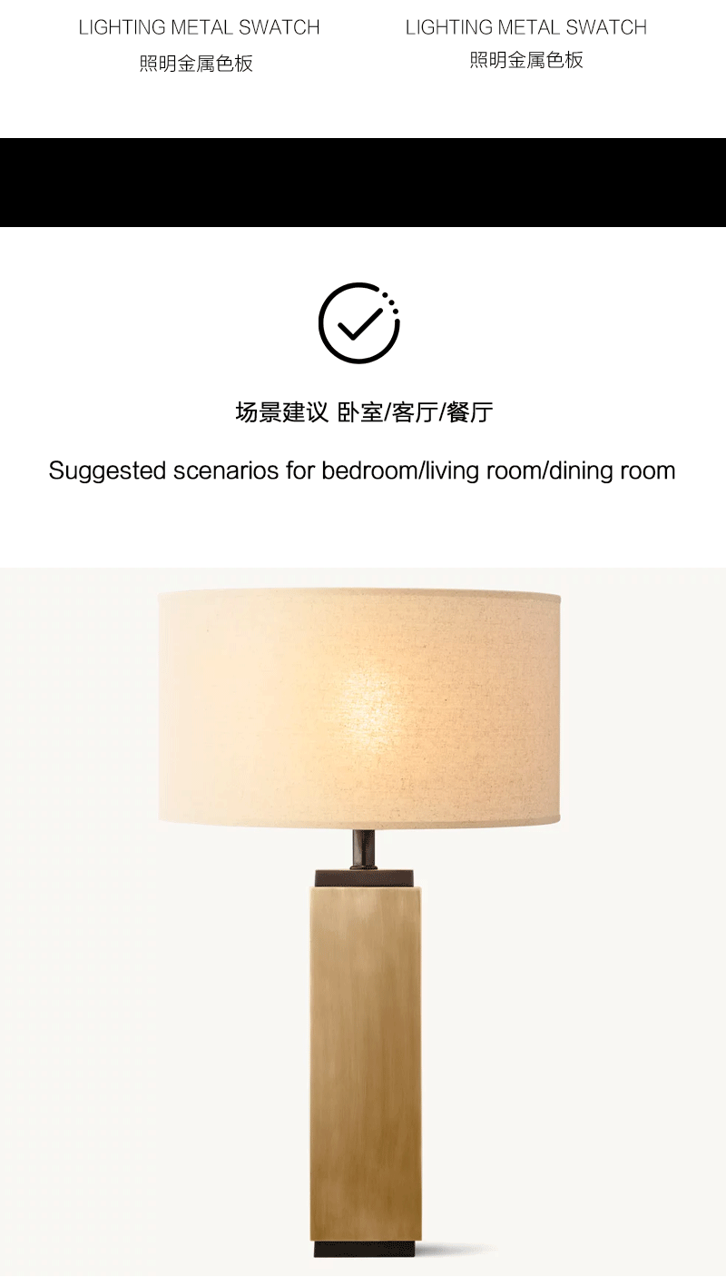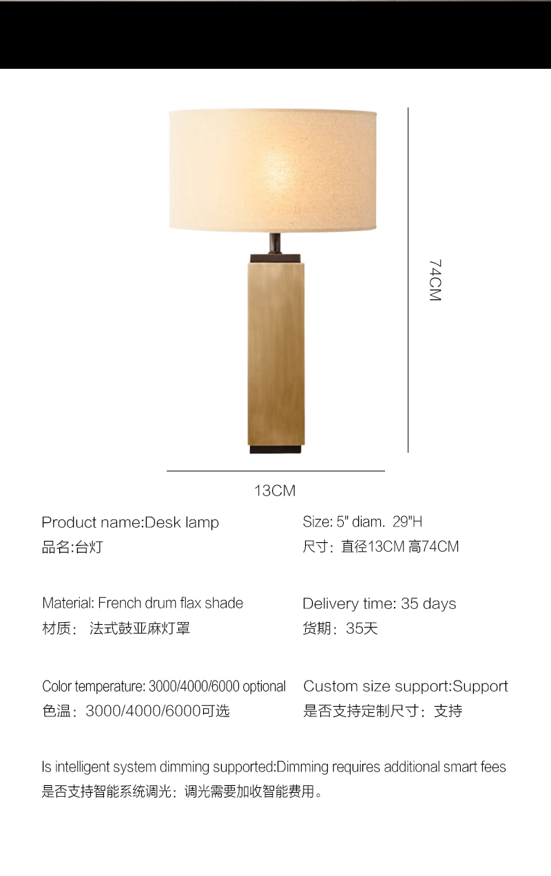 美式轻奢客厅卧室方柱亚麻灯罩台灯