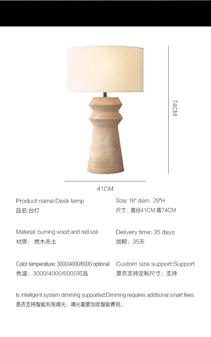 仿古陶瓦客厅卧室赤土米色堆叠台灯